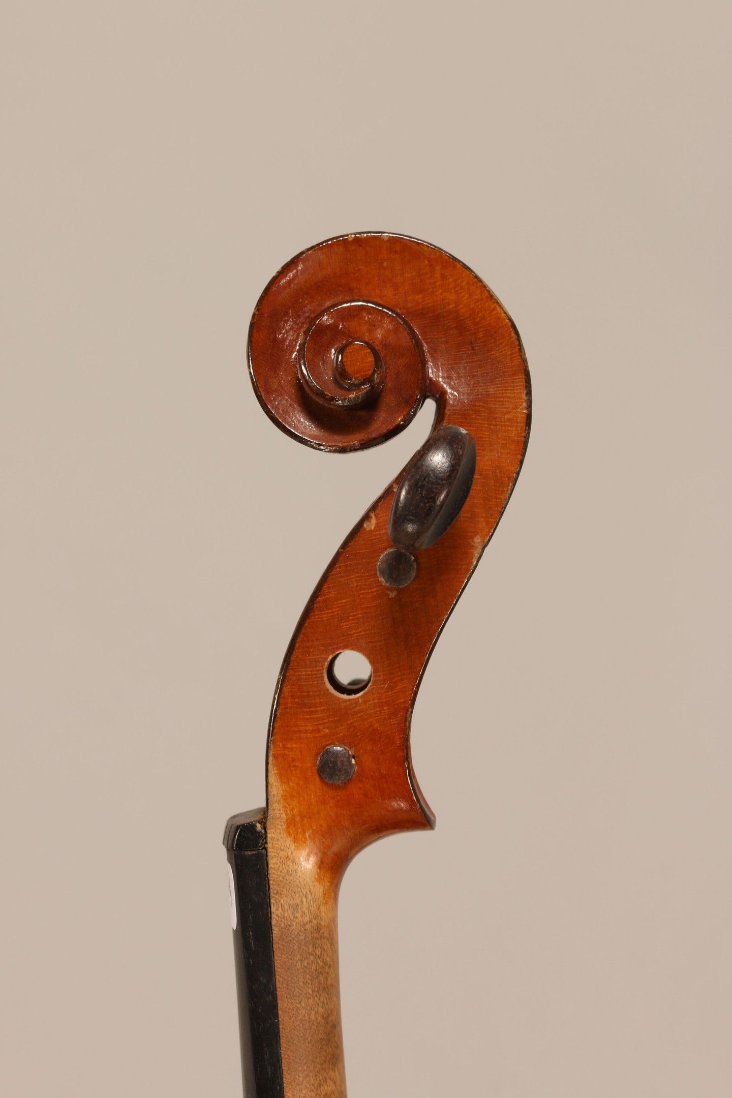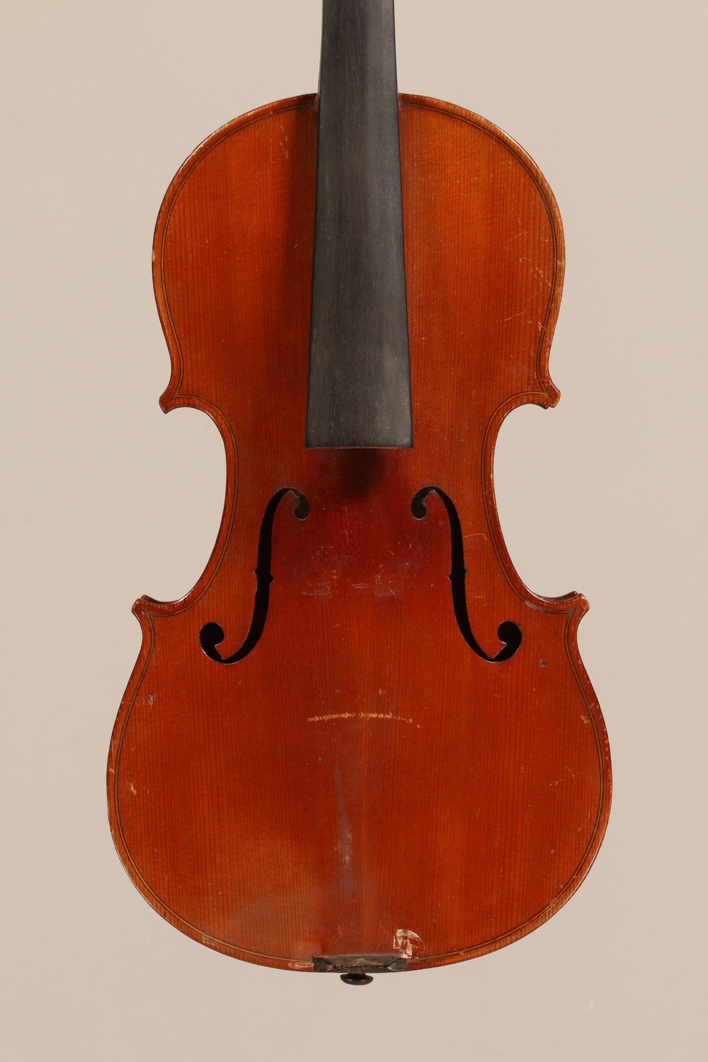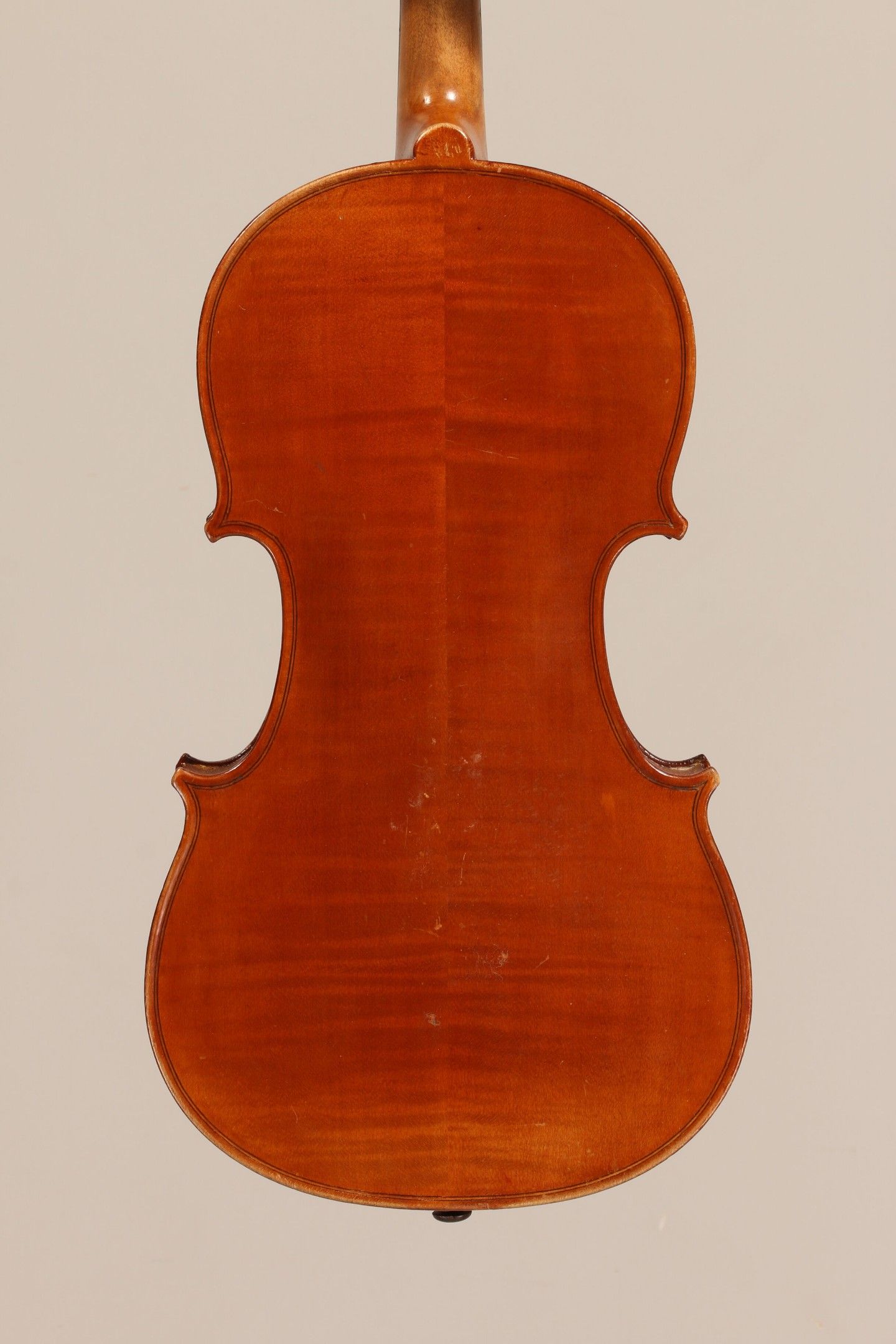 Violon Mirecourt XXème, fait dans les ateliers JEROME THIBOUVILLE-LAMY ; portant étiquette apocryphe de Stradivarius. Bon état. 357mm. [VREXP3]
