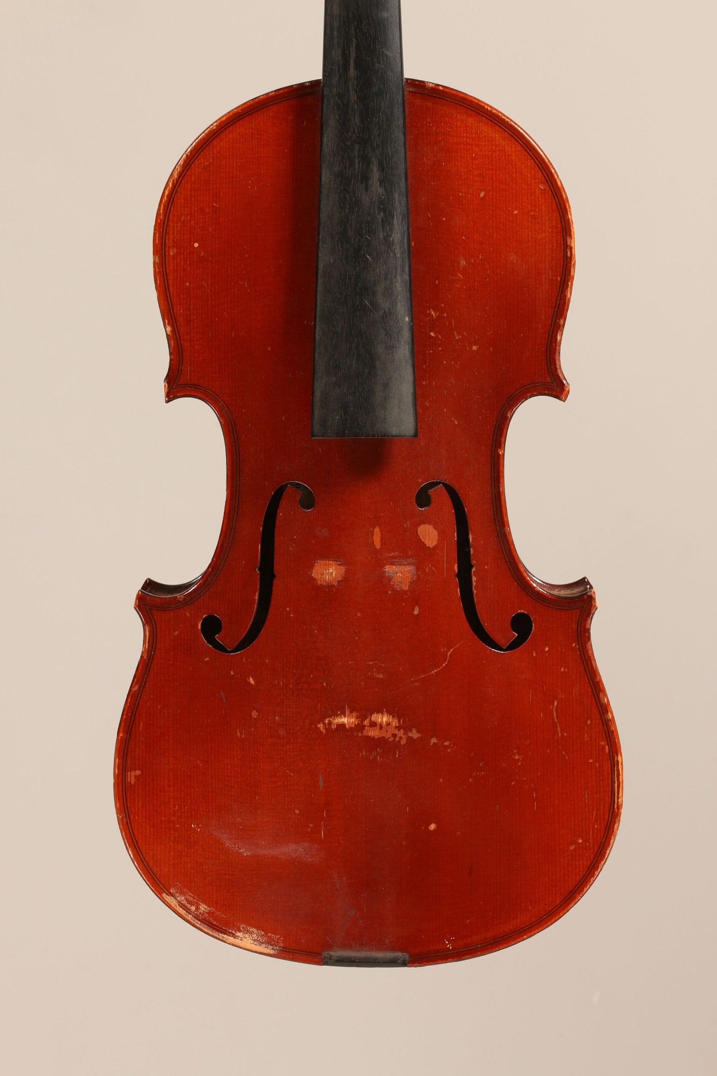 Violon Maison LABERTE fait à Mirecourt début XXème ; portant étiquette Vendu chez Jules LAVEST et portant étiquette apocryphe Stradivarius. Assez bon état. 362mm. [VREXP2]