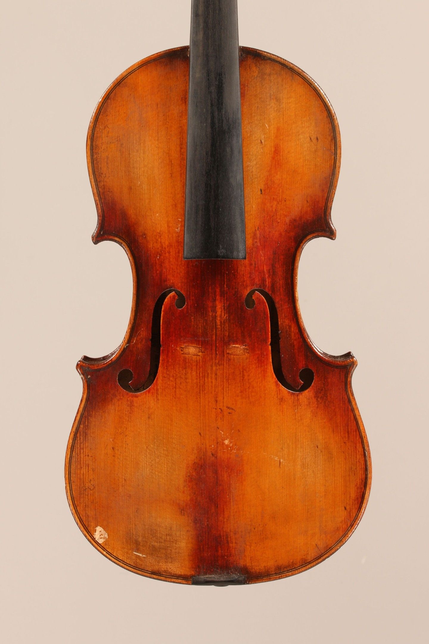 Violon de la Maison JÉRÔME THIBOUVILLE-LAMY, fait à Mirecourt, début XXème ; portant étiquette apocryphe Amatus et étiquette J.T.L. et marque au fer Sarasate sur le talon. Assez bon état. 359mm. [VREXP2] This instrument is more than 100 years old.
