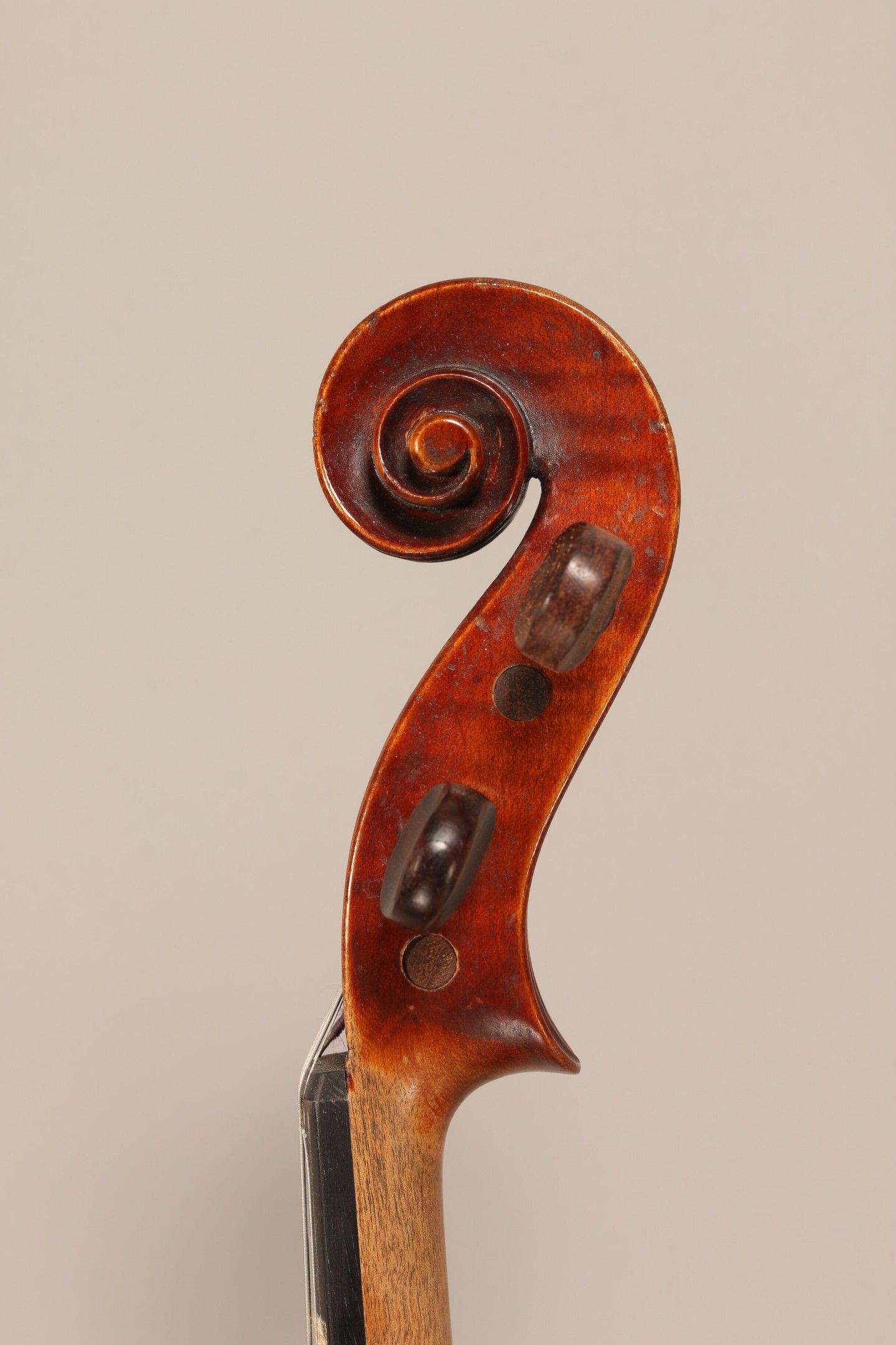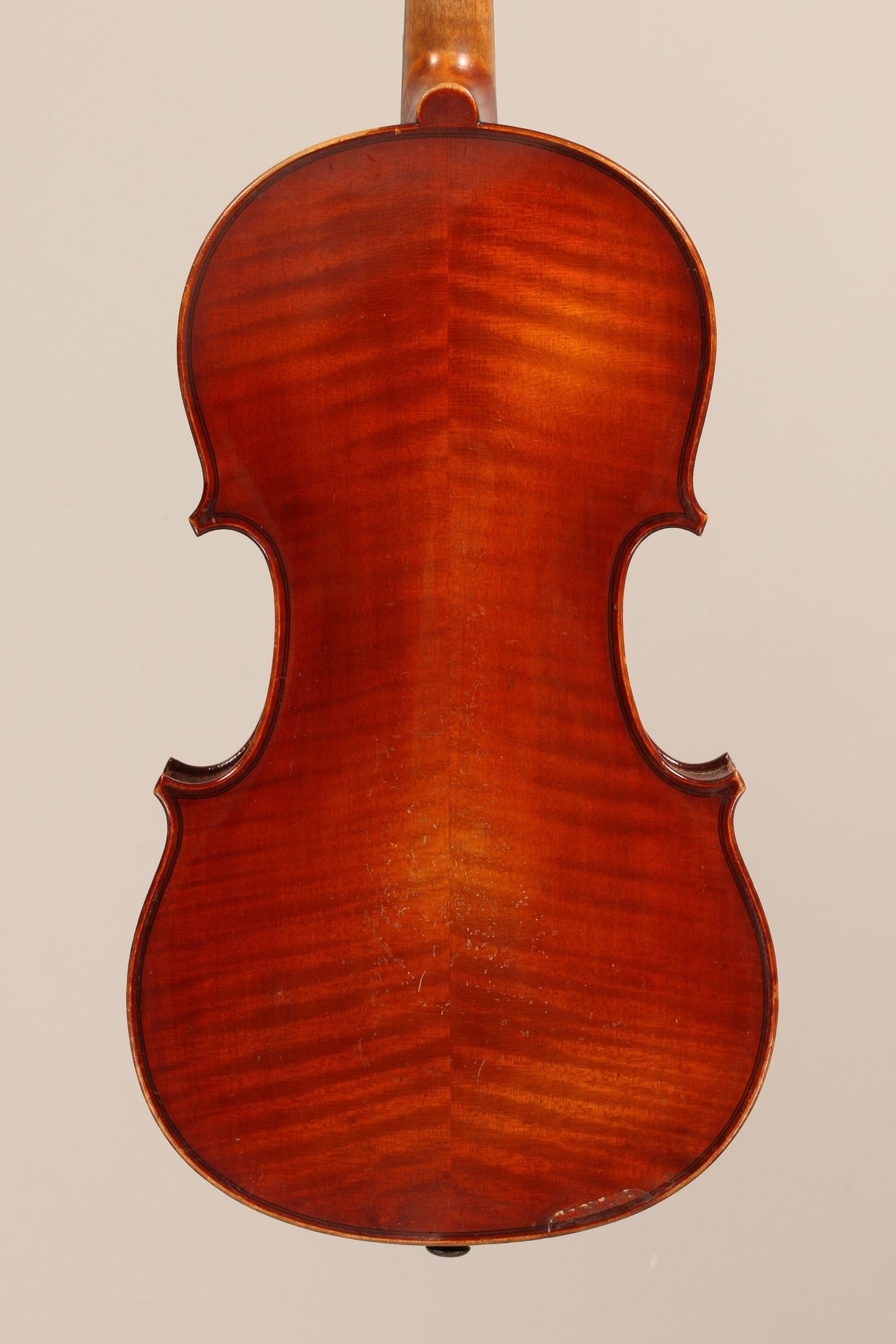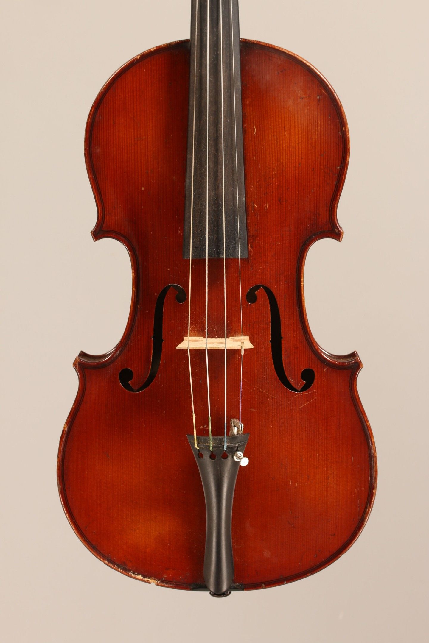 Violon Français, fait à Mirecourt début XXème, fini et vendu par Emile Boulangeot à Lyon en 1926 ; portant étiquette Fini et repassé sous la direction Emile Boulangeot. Assez bon état. 360mm [VREXP3]