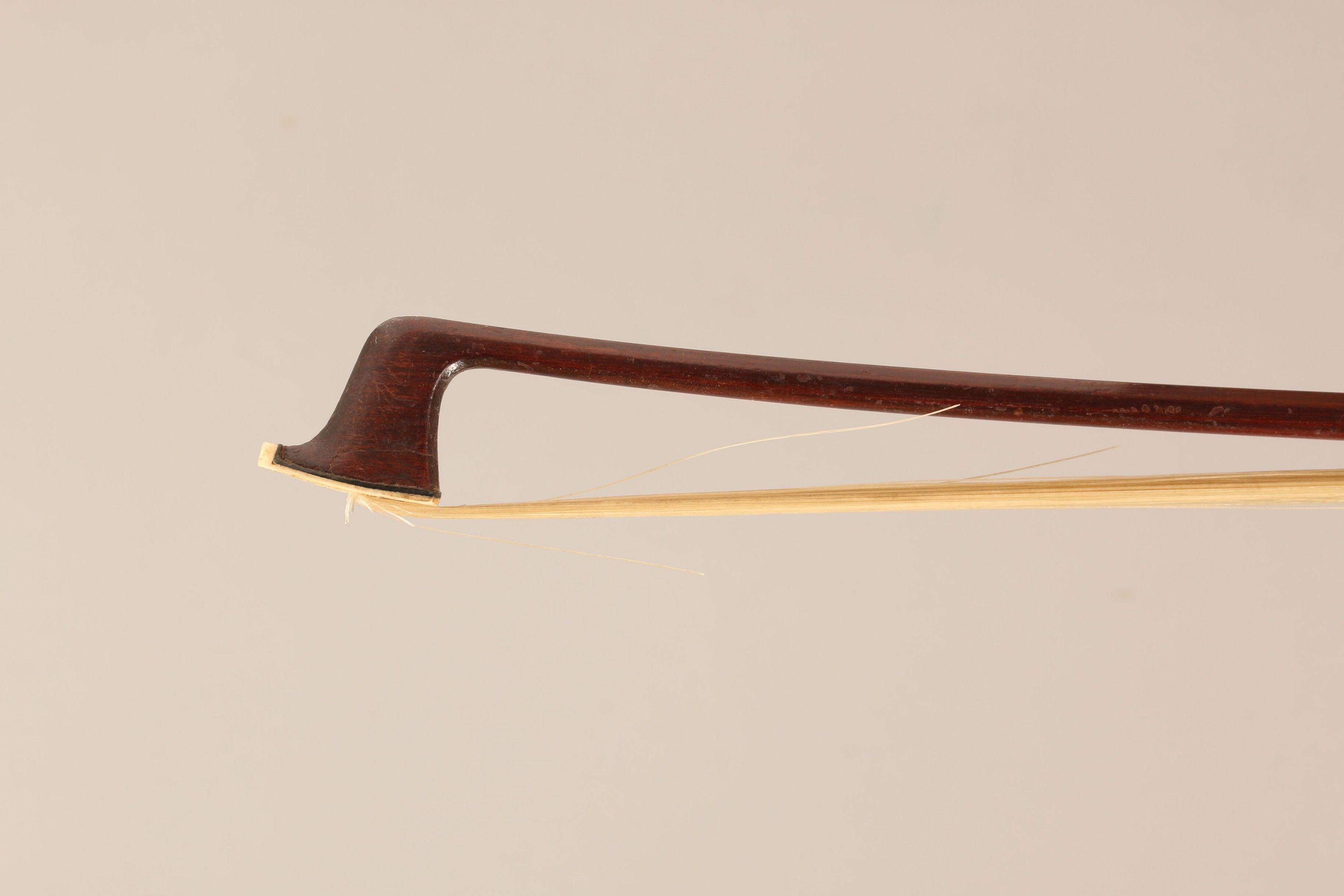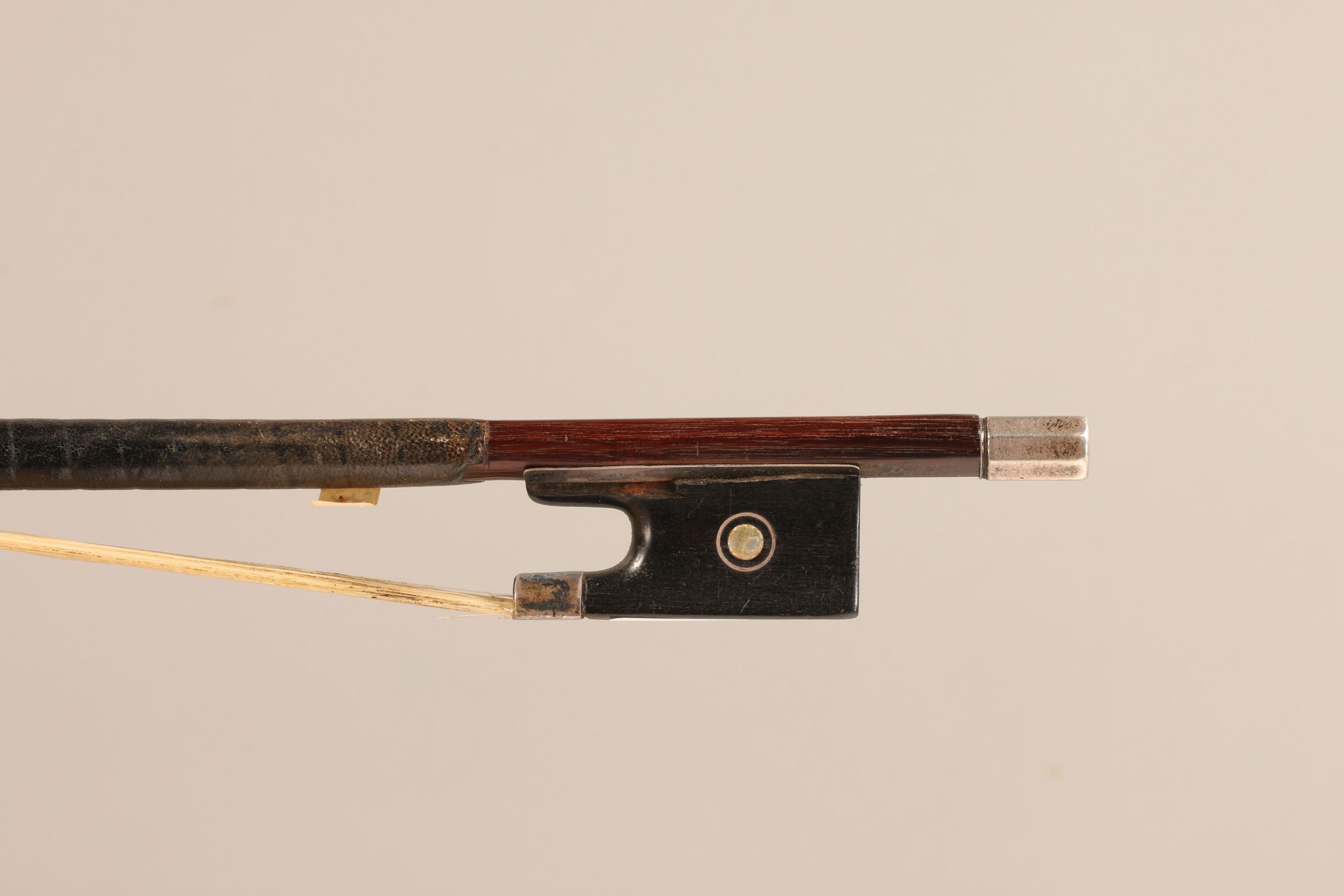 Archet de violon des ateliers LABERTE, signé "Laberte", monté argent. 56g4. Manque à la hausse, éclat et restauration à la tête.