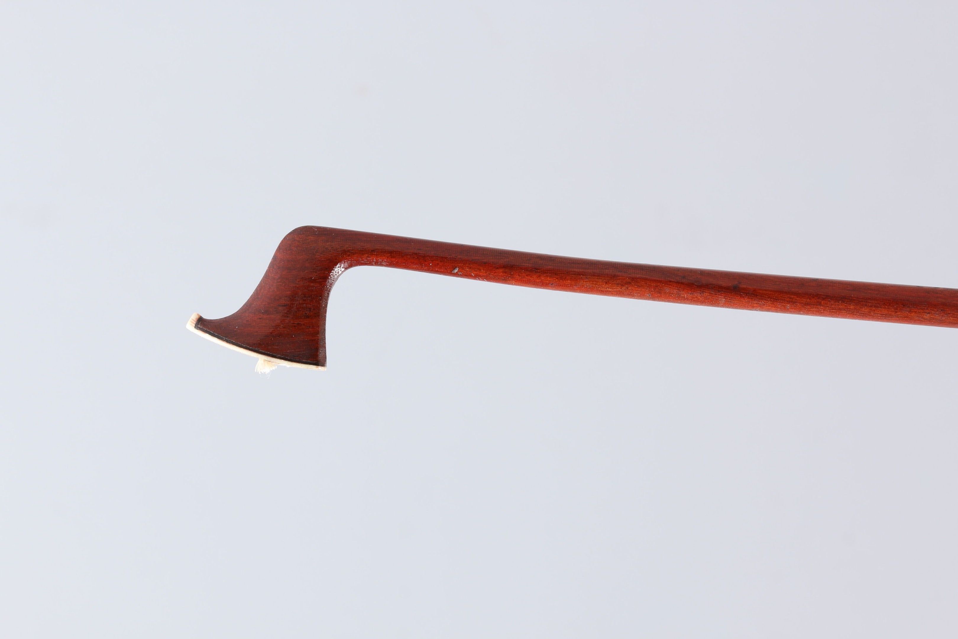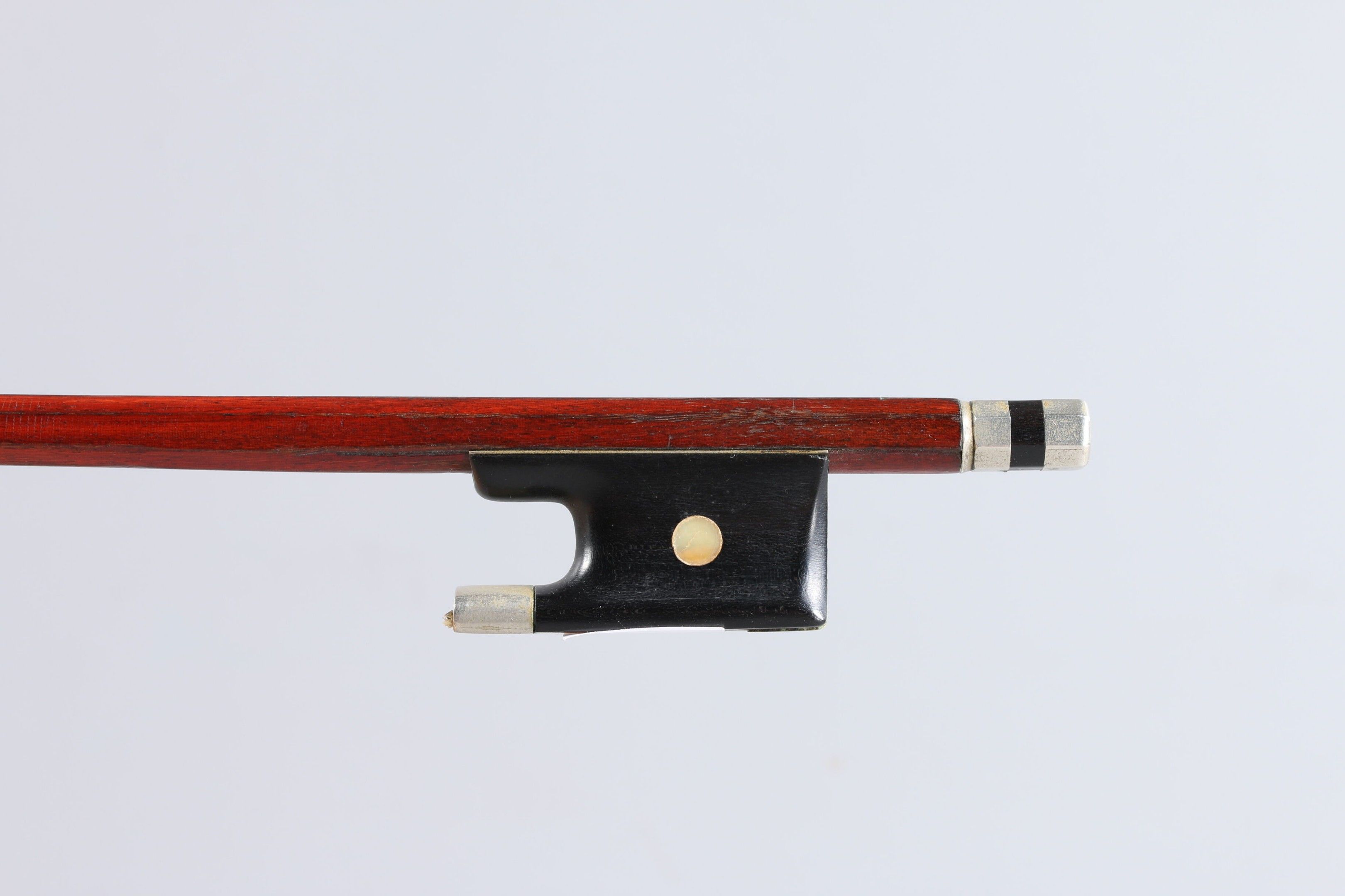 Archet de violon de JEROME THIBOUVILLE-LAMY, monté maillechort. 49g, sans mèche ni garniture. Assez bon état.