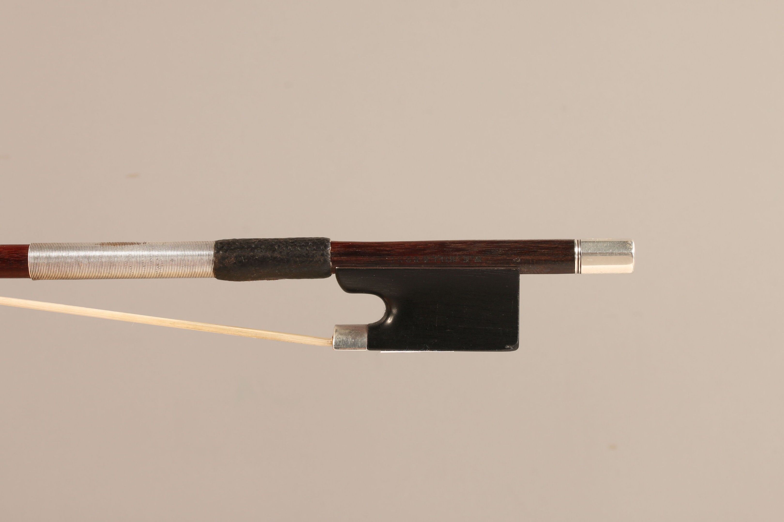 Baguette d'archet de Hill, signé "Hill and Sons", enture de tête avec tête d'Eugène Sartory, monté maillechort. 58g9. (EAXG-CAD-3581)