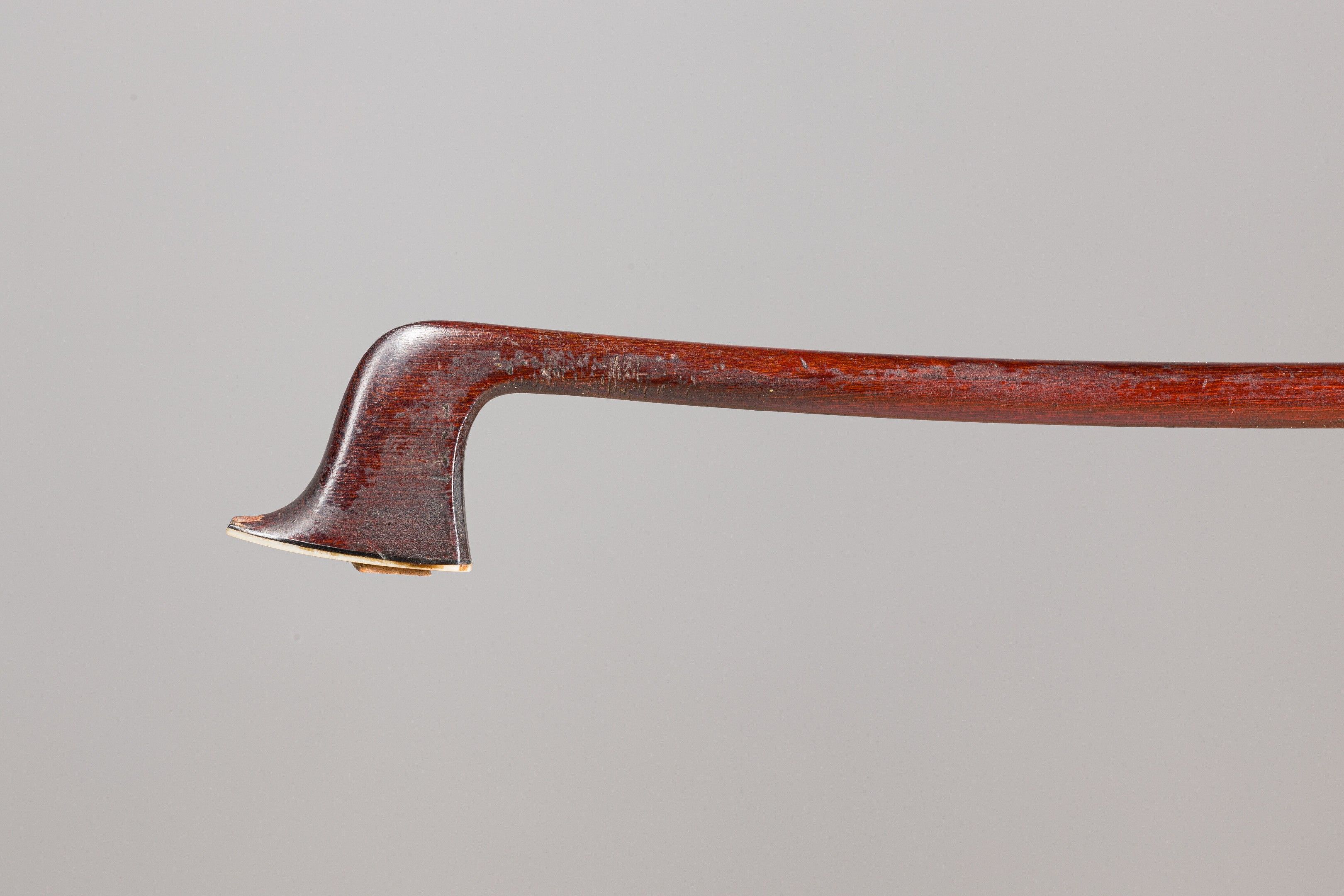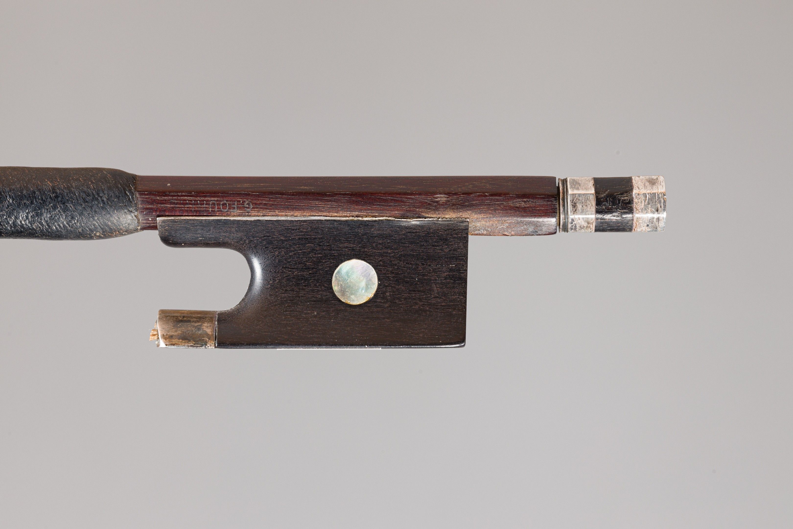 Archet de violon des ateliers LABERTE, fait vers 1945, signé "G.Fournier", monté argent. 57g1, sans mèche. Éclat bec de tête, coups collet, mortaise rallongée, coulisse endommagée, fin de nœud baguette. En bon état. (DMGO-BYT-4069)