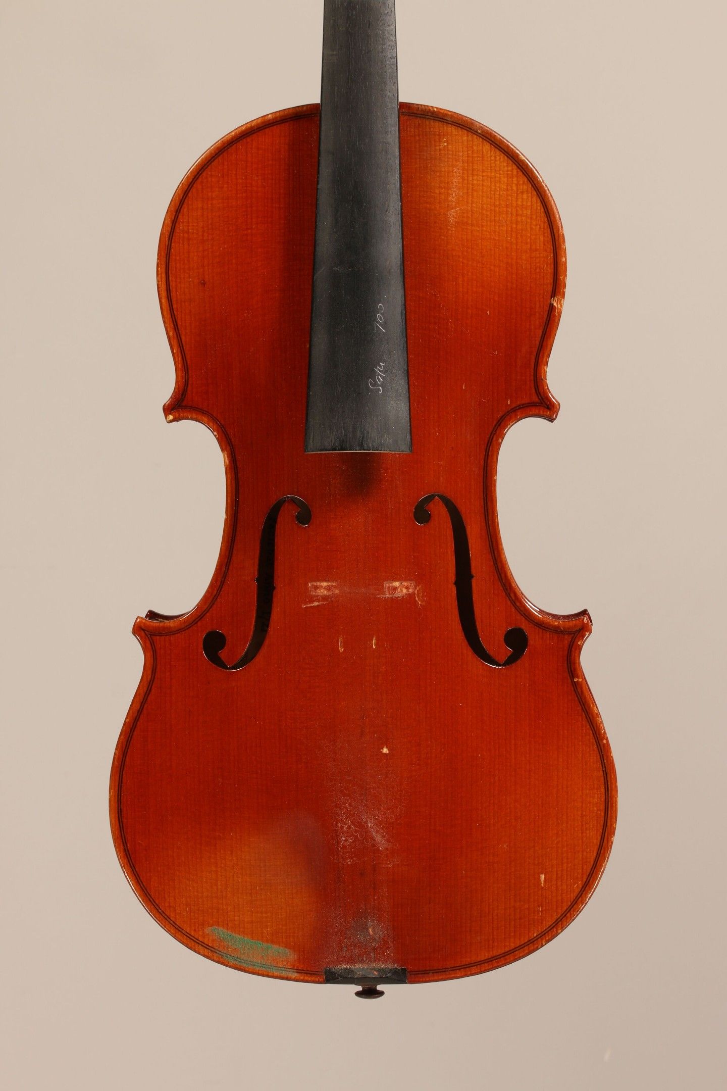 Violon Français, fait à Mirecourt, XXème ; portant étiquette apocryphe Stradivarius. Assez bon état. 354mm. [VREXP3]