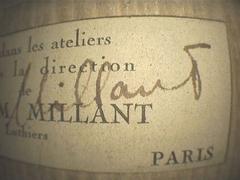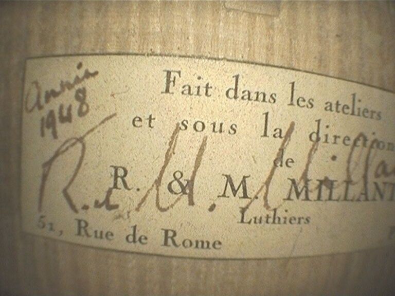 Violon fait des ateliers de Roger et Max MILLANT à Paris en 1948 ; portant étiquette Fait dans les ateliers et sous la direction de R et M Millant, et signature de R. et M. Millant. Assez bon état. 353mm