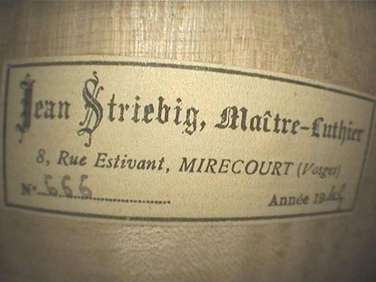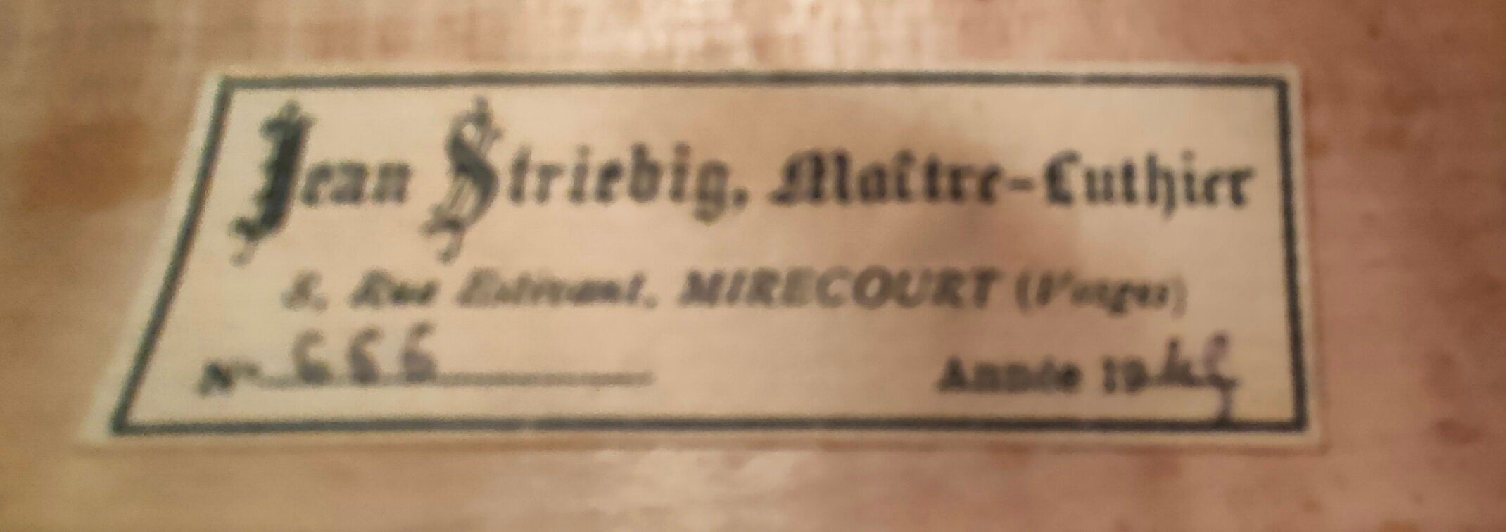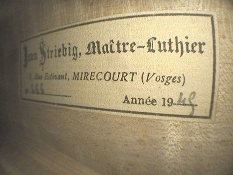 Violon de Jean STRIEBIG, fait à Mirecourt en 1945, numéroté 666 ; portant étiquette de l'auteur. Bon état. 357mm. Accompagné d'un certificat d'origine. [VRVI2512_019-VREXP1]