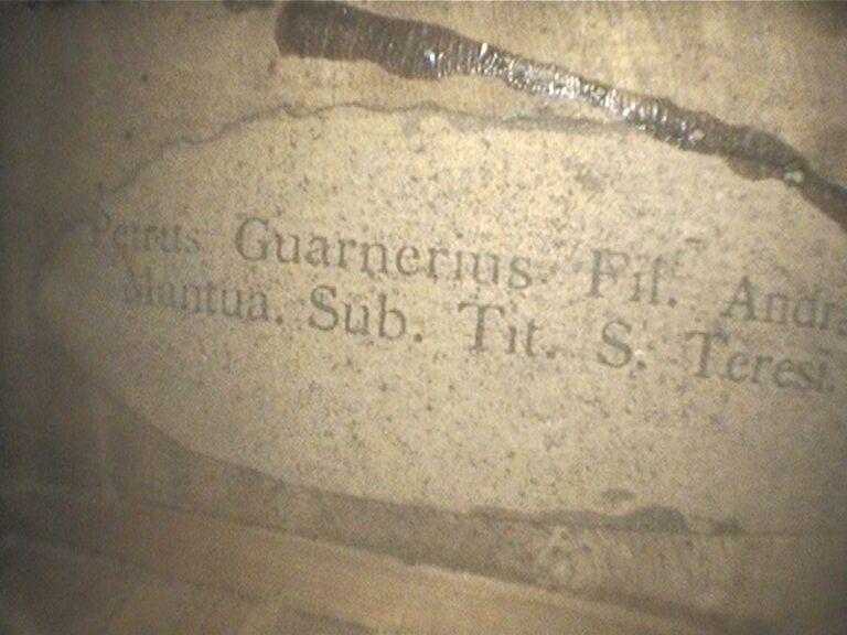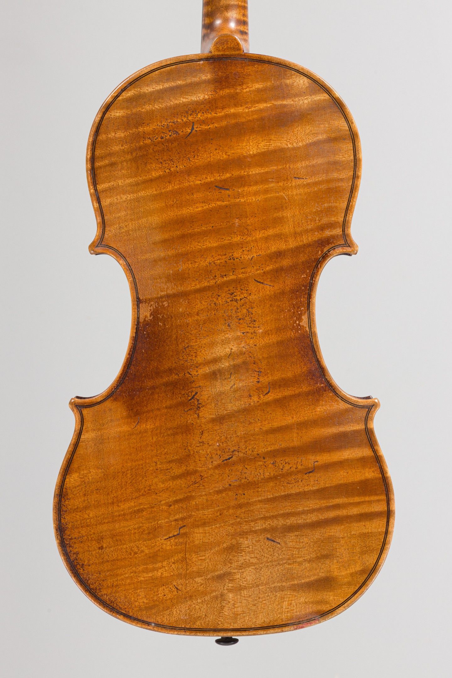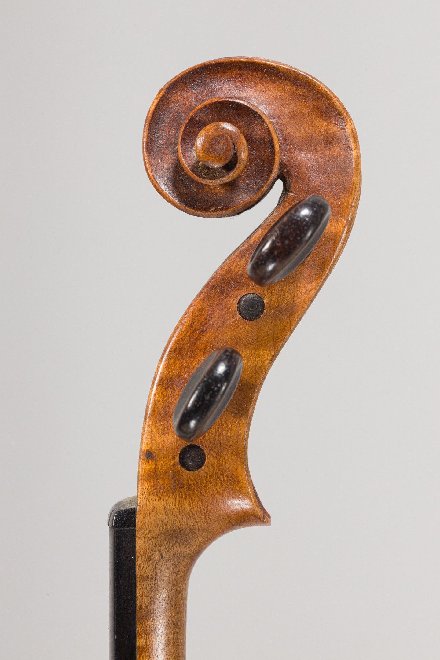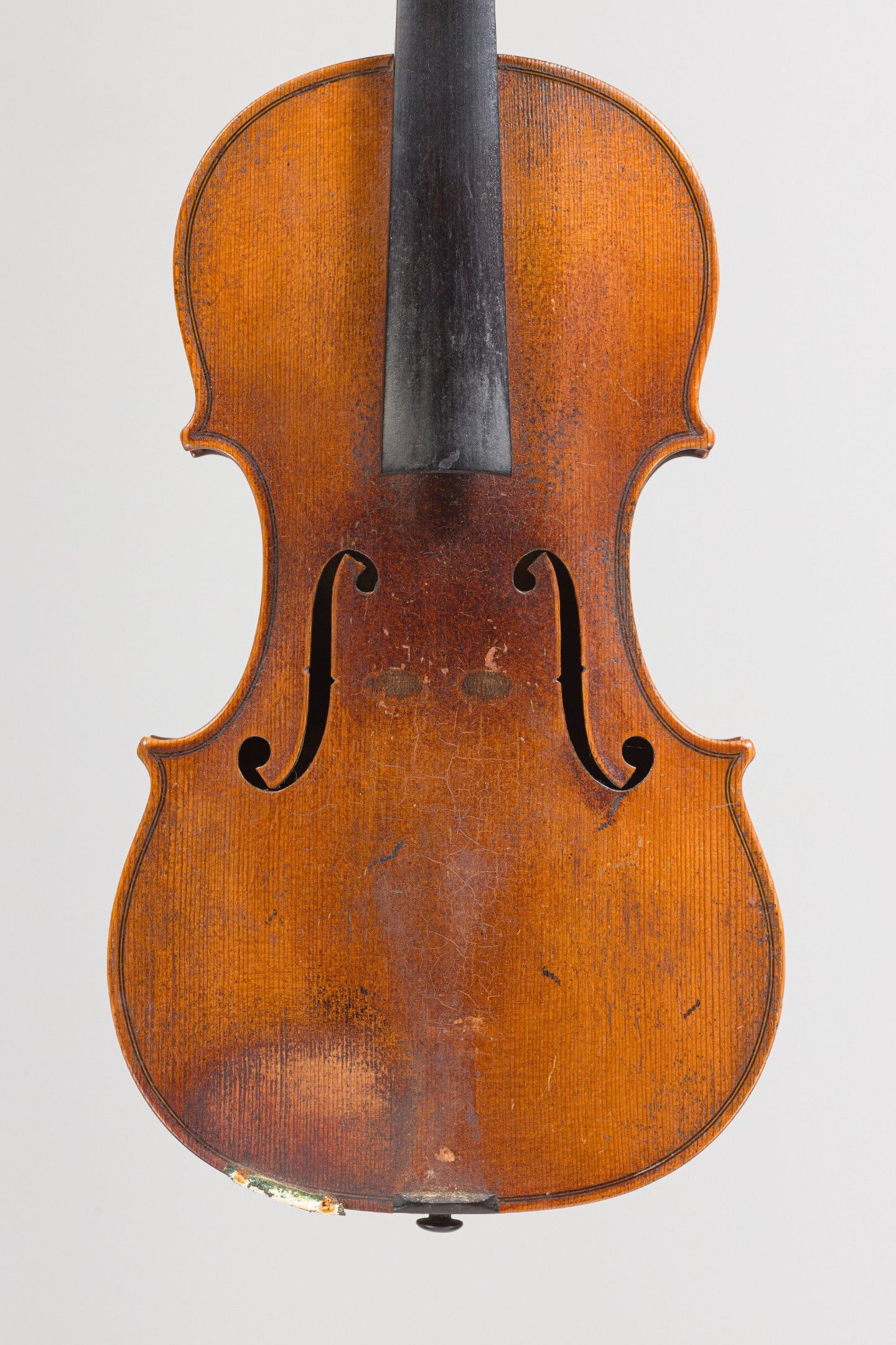 Violon de la maison de JÉRÔME THIBOUVILLE-LAMY, fait à Mirecourt vers 1910-1915 ; portant étiquette apocryphe Guarnerius. Assez bon état. 359mm. [VREXP2]