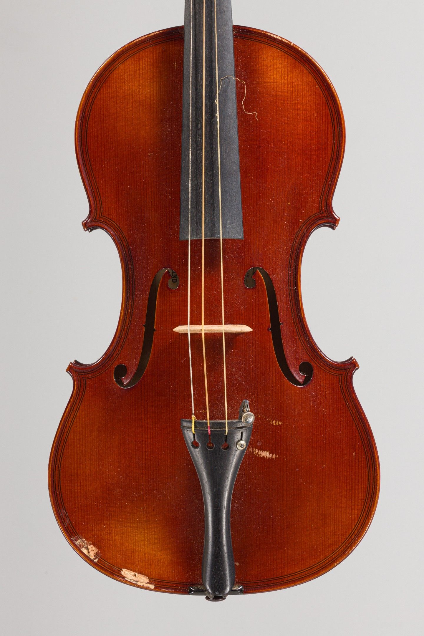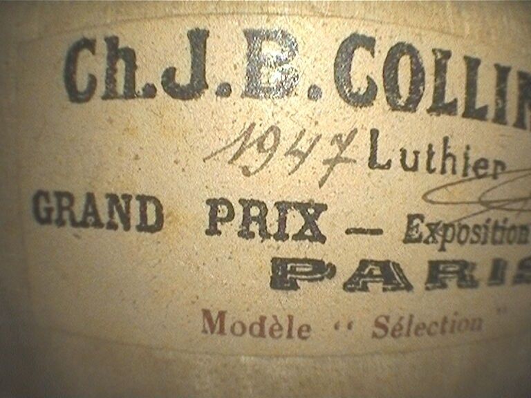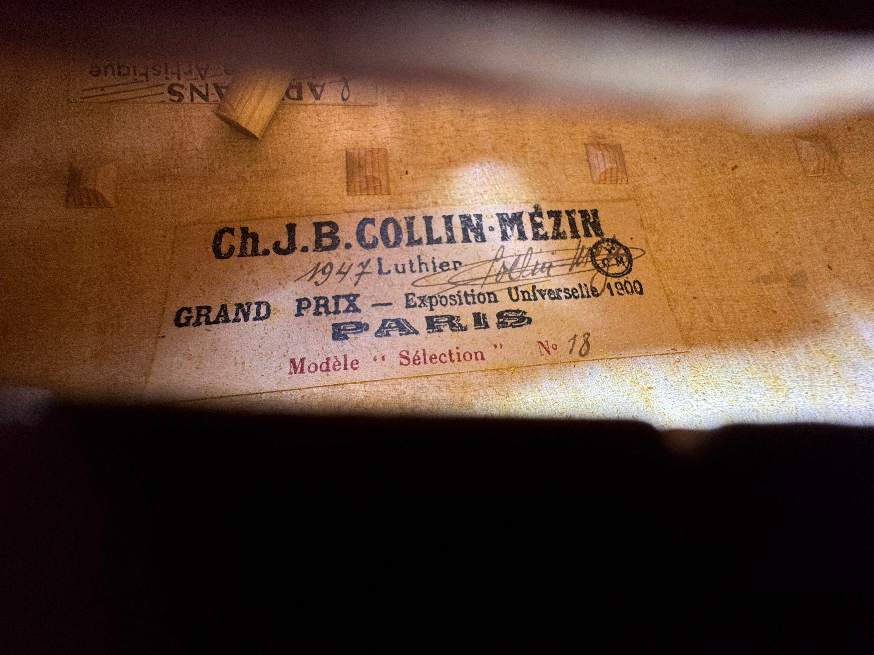 Violon de Charles Jean-Baptiste Léon COLLIN MEZIN, fait à Mirecourt en 1947, modèle 18 ; portant étiquette Ch JB Collin Mezin, table et fond en double filet. Assez bon état. 361mm. Avec certificat de garantie original de Collin Mezin, daté de 1947 [VREXP1]