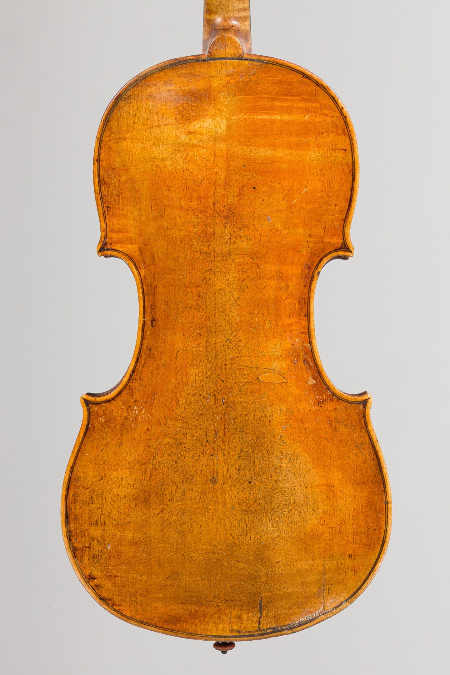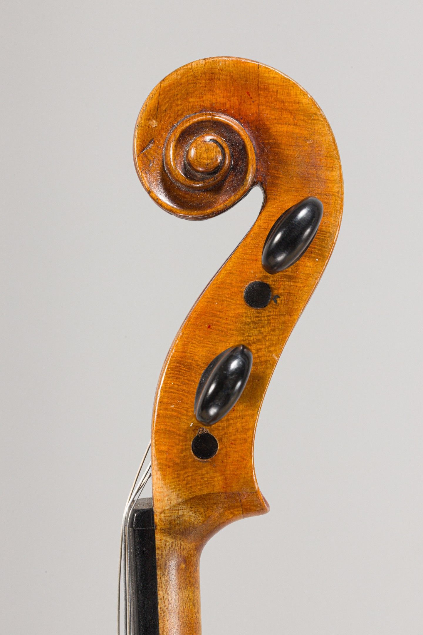 Violon Allemand XVIIIème. Petite pièce non originale sur le fond, tête remplacée, cassure sur la table près de la barre, cassures sur le fond. 355mm. [VREXP3]