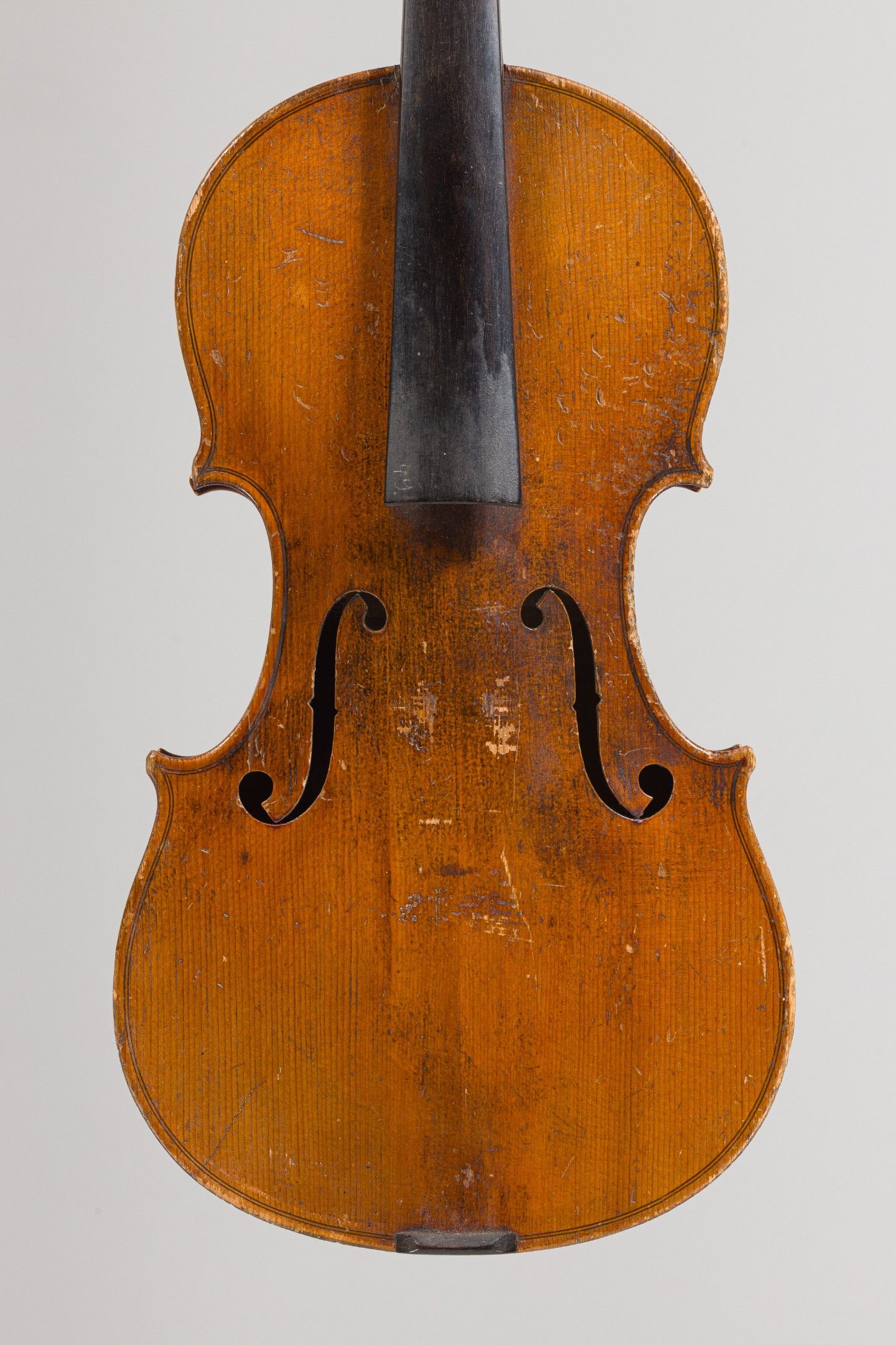 Violon de la maison JÉRÔME THIBOUVILLE-LAMY, fait à Mirecourt vers 1900 ; en modèle « Stradivarius » dont il porte l'étiquette. Manque de filet sur le fond. 359mm. [VRVI2512_033-VREXP2]