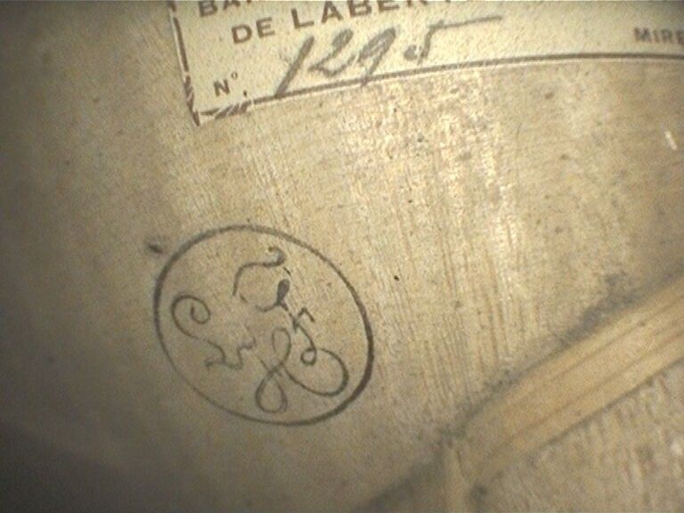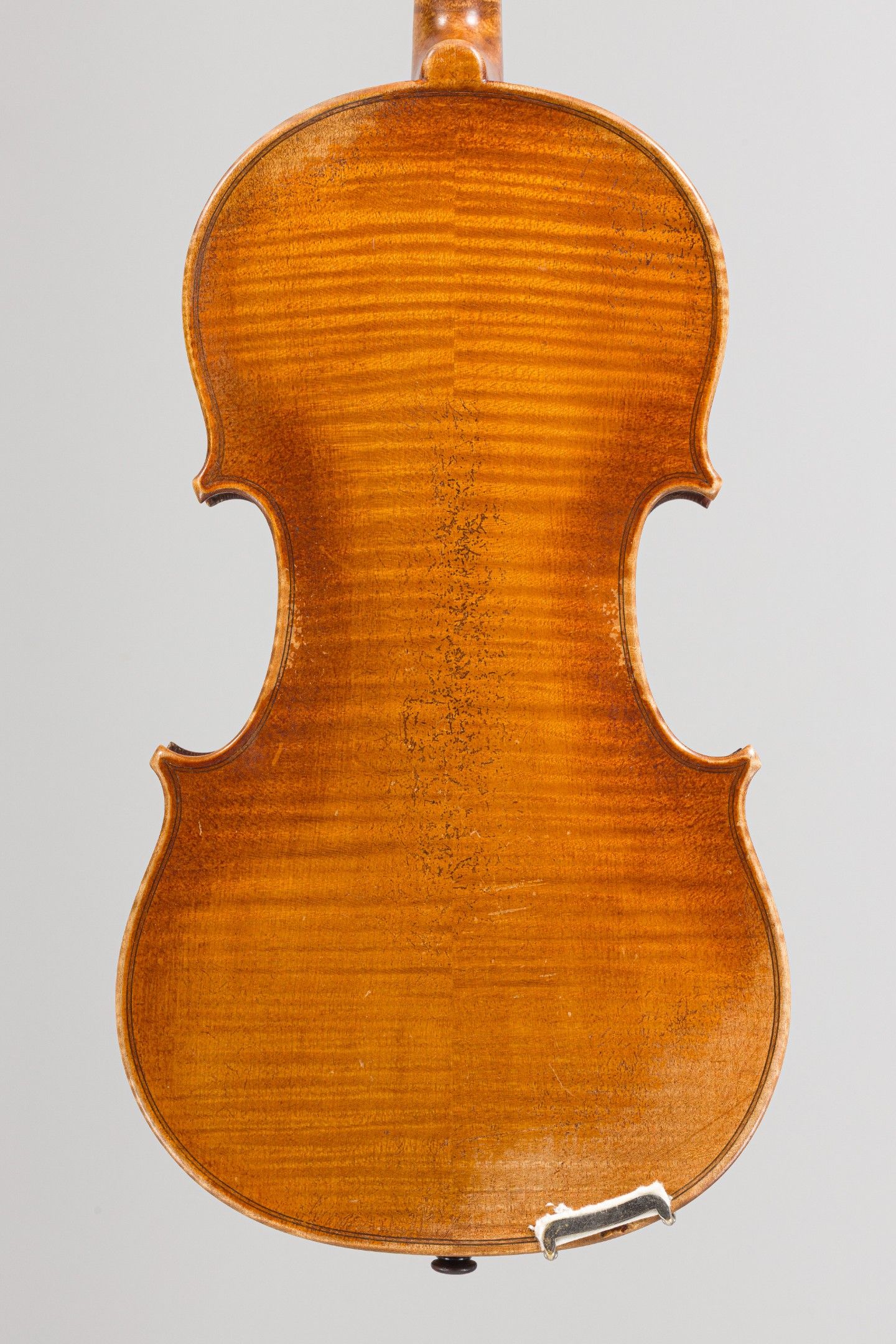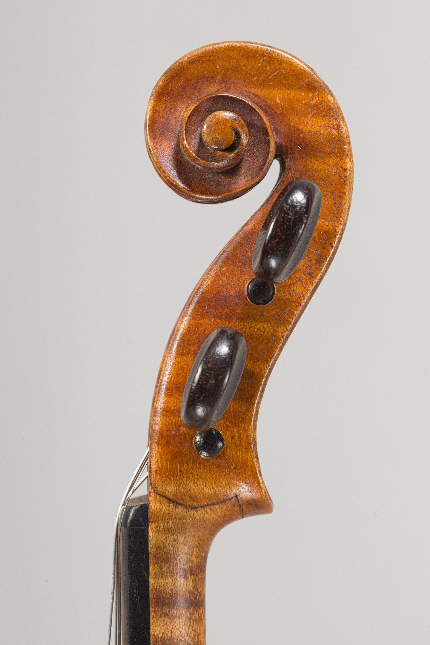Violon de la maison LABERTE, fait à Mirecourt en 1908, numéroté 1295 ; portant étiquette apocryphe de Carlo Bergonzi, portant étiquette Laberte Humbert et marque au fer des initiales LH. Assez bon état. 361mm. [VREXP2]