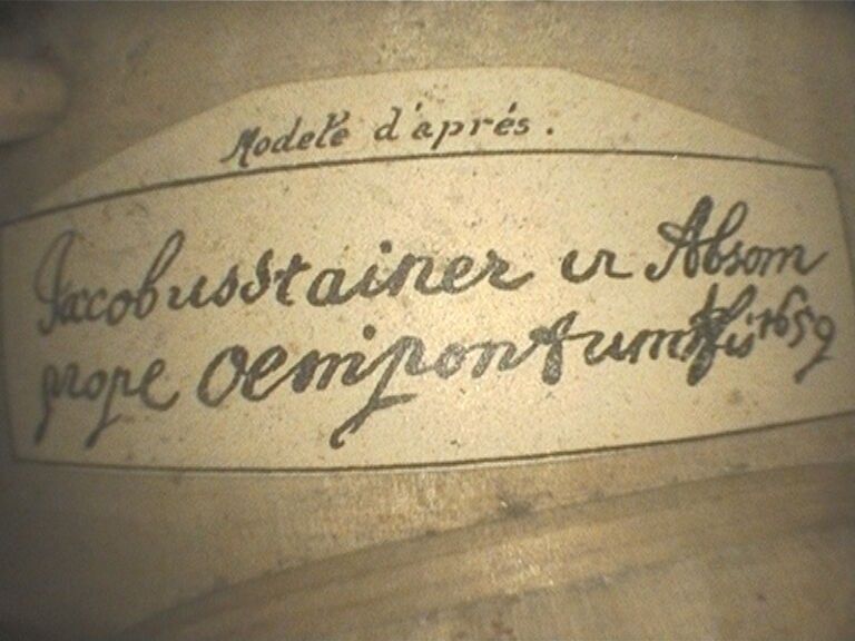 Violon de la maison LABERTE, fait à Mirecourt vers 1940 ; portant étiquette Fait sous la direction de Marc Laberte et étiquette de modèle Stainer. Assez bon état. 357mm [VREXP2]