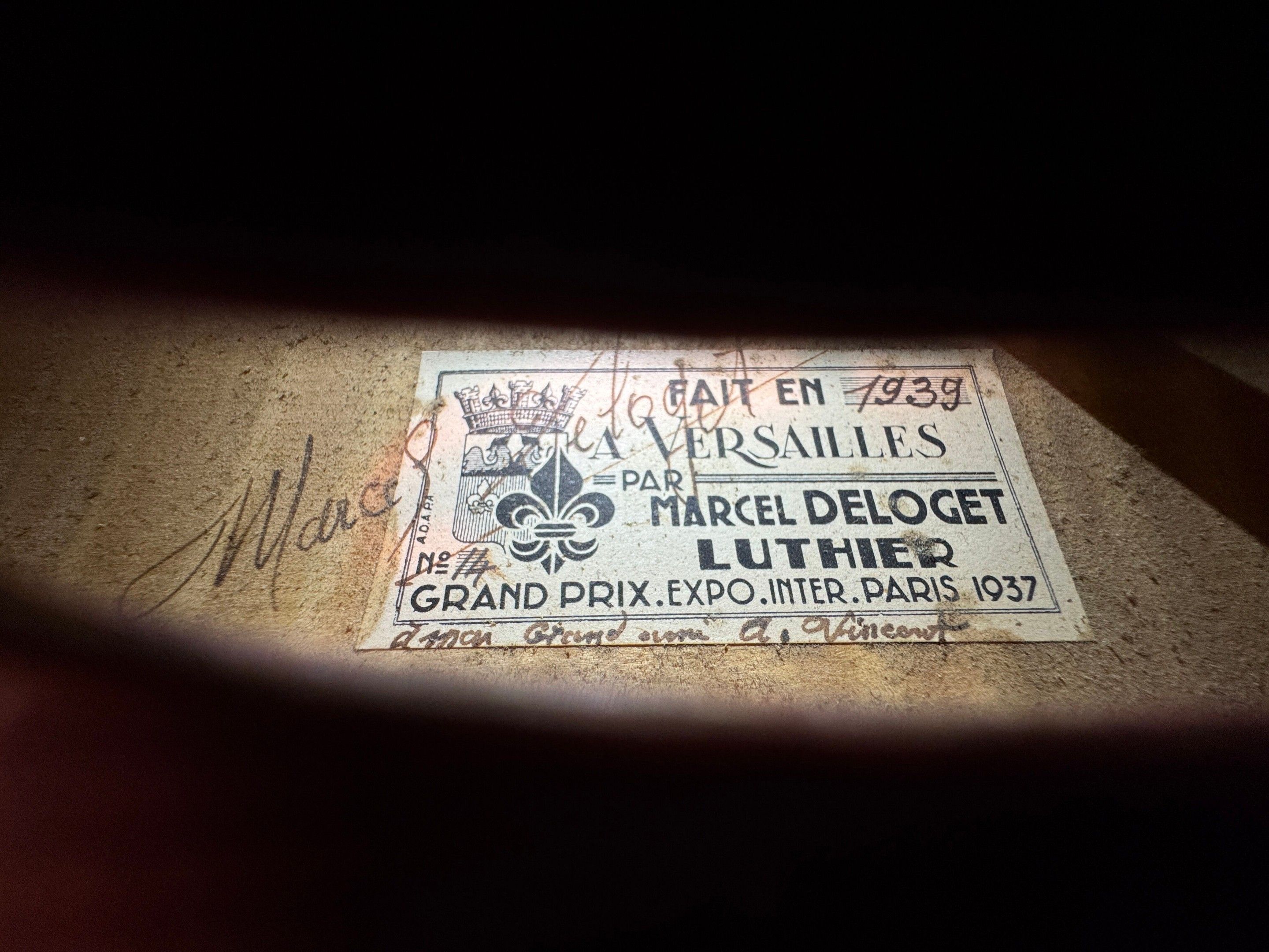 Violon de Marcel DELOGET, fait à Versailles en 1939 ; portan…