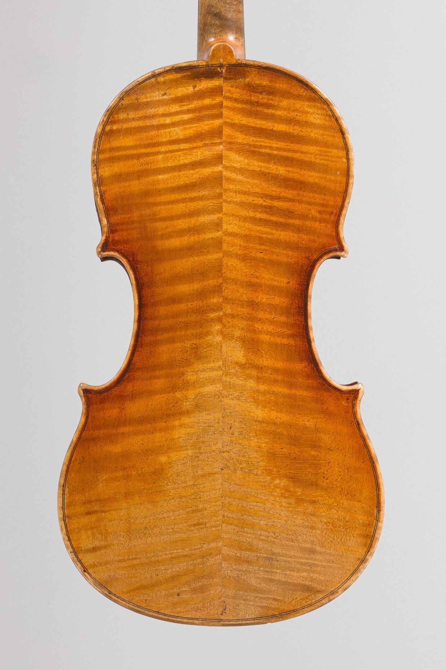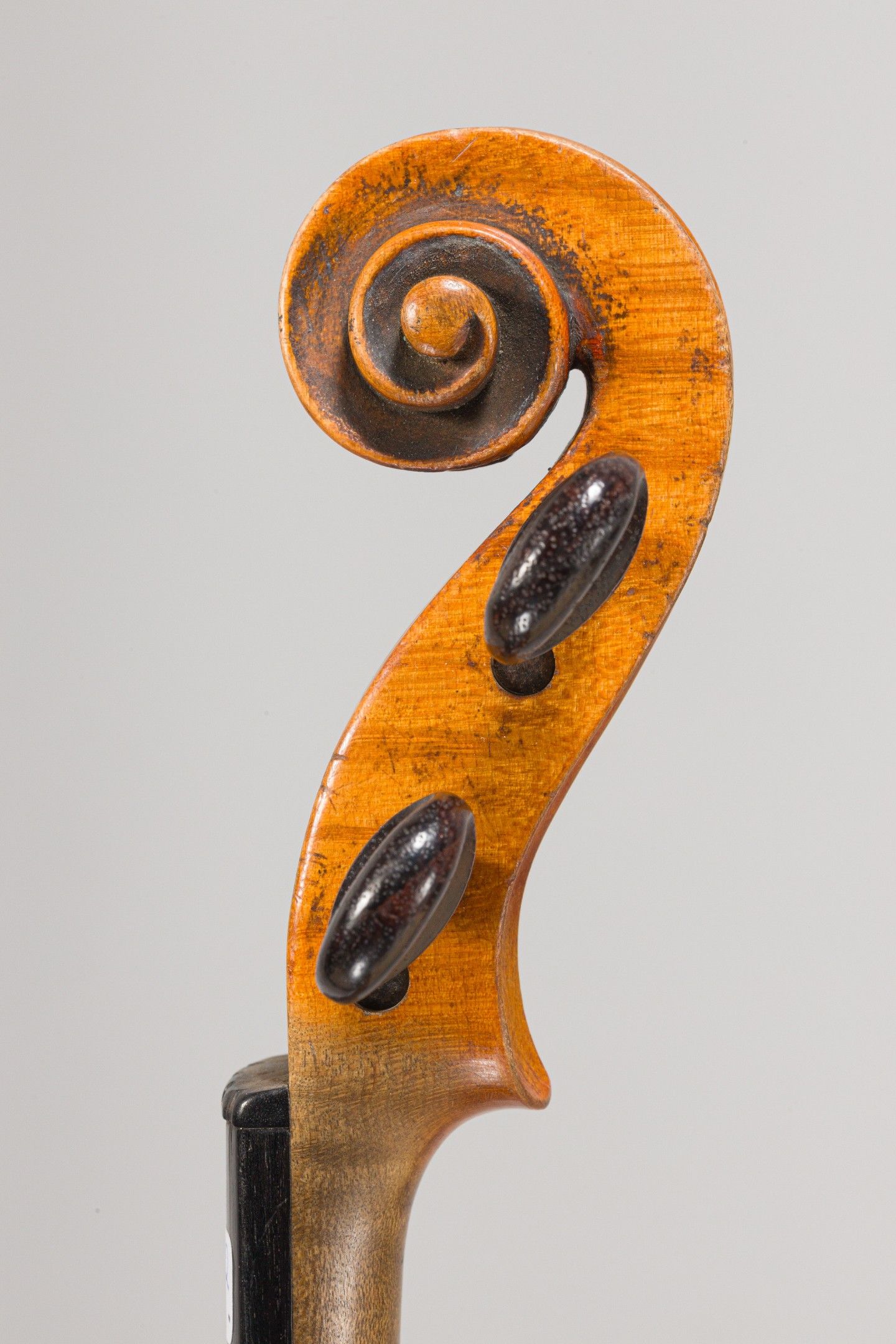 Violon de la maison JÉRÔME THIBOUVILLE-LAMY, fait à Mirecourt vers 1910-1915 ; portant étiquette JÉRÔME THIBOUVILLE-LAMY et marque apocryphe de F Caussin. Petites griffures et restaurations sur la table. 362mm. [VREXP2]