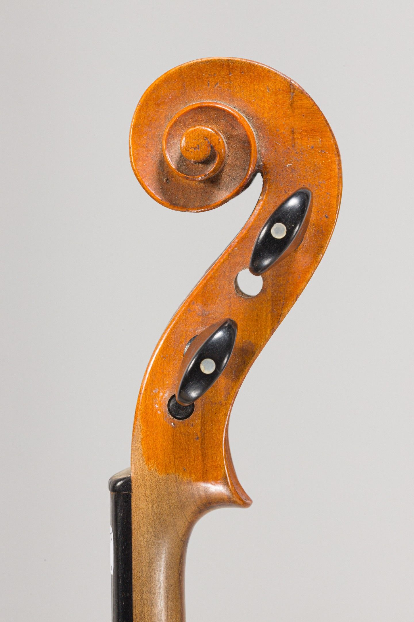 Violon de Jean-Baptiste THOUVENEL, fait à Mirecourt vers 1820-1830 ; portant une marque au fer "Thouvenel Henry". Tête restaurée. 361mm. [VREXP1]