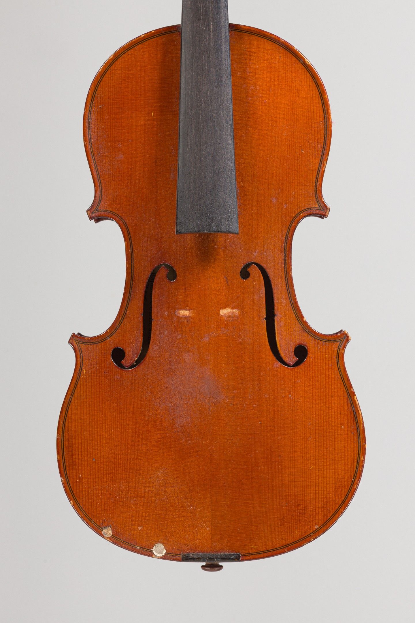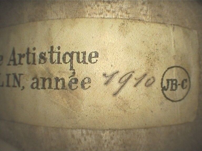 Violon de la maison LABERTE, fait à Mirecourt, en 1910, numéroté 1 ; portant étiquette lutherie artistique Jean-Baptiste Collin année 1910 N°1. Assez bon état. 358mm. [VREXP2]
