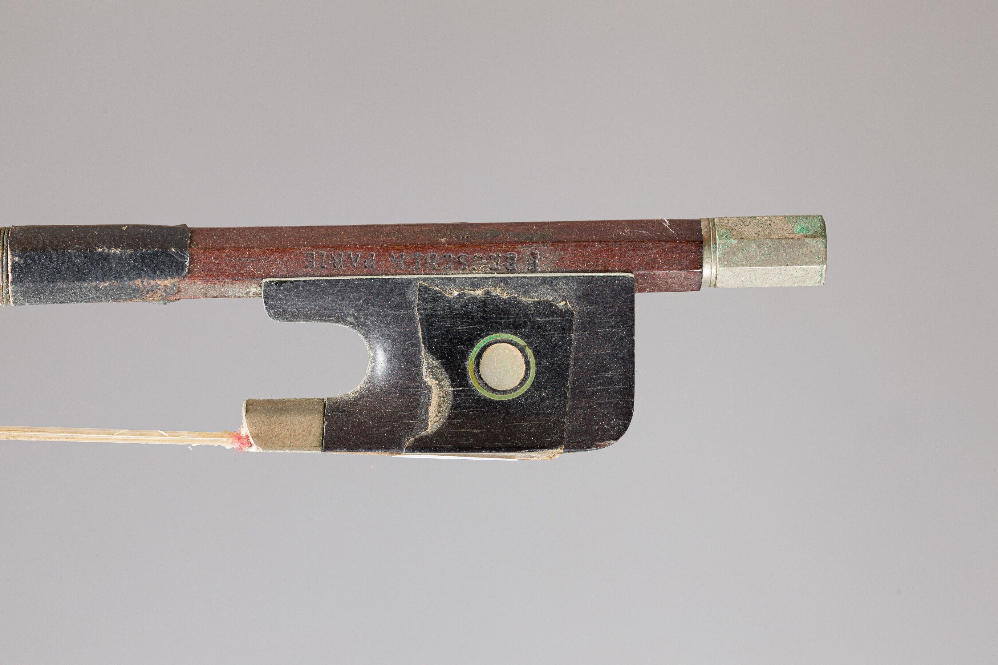 Archet de violon de Pierre MALINE, fait vers 1900, signé "P. Beuscher Paris", monté maillechort. 58g3, garniture et mèche fine. Coups baguette. Bon état. (EBBH-CHZ-2191)