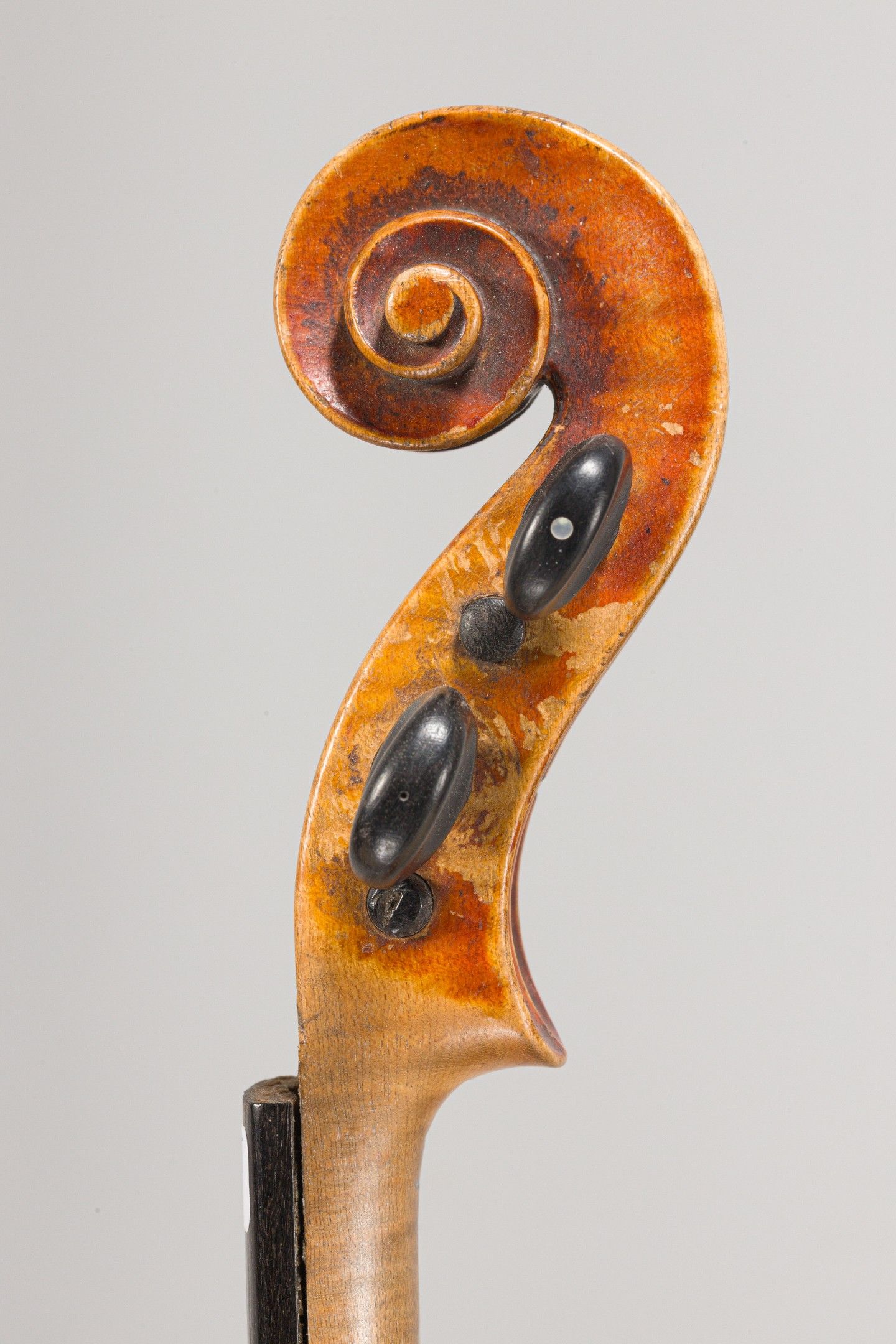 Violon de Nicolas BIGOURAT fait à Moulins vers 1830-1835 ; en modèle Maggini, portant signature sur la table 1er violon de Bigourat fils fait après son apprentissage et signature des initiales sur le tasseau du haut. Cassures sur la table, dont cassure d'âme. 360mm. This instrument is more than 100 years old. [VREXP1]