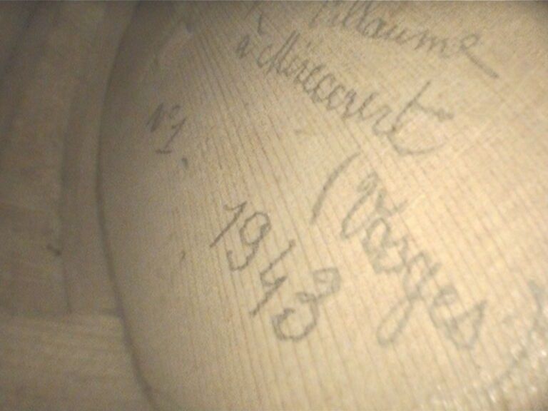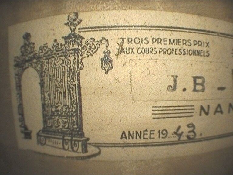 Violon de Jean Baptiste VILLAUME, fait à Mirecourt en 1943 ; portant étiquette JB Villaume, à Nancy 1943, et signature sur la table de JB Villaume à Mirecourt 1943 n°1. Bon état. 354mm [VREXP1]
