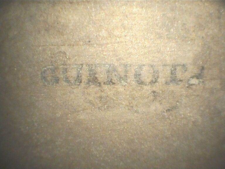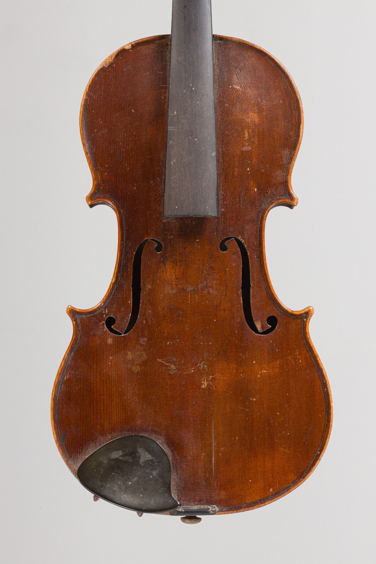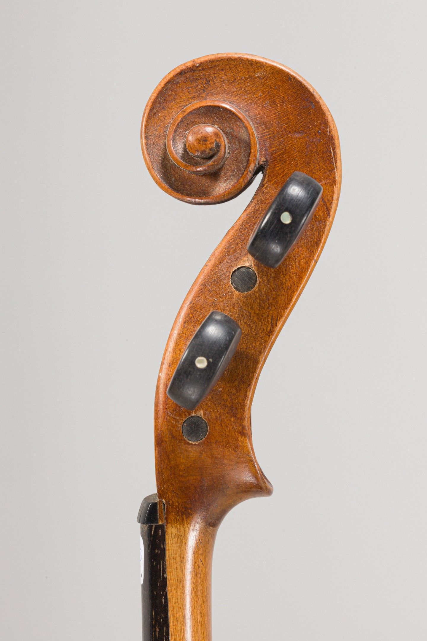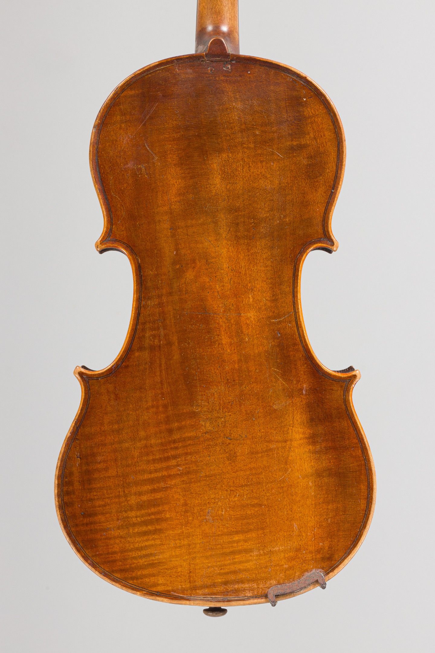 Violon de GUINOT, fait à Mirecourt, vers 1830 ; portant marque au fer sur le fond de Guinot. Talon cassé, petit éclat à l'F de droite. 357mm [VREXP1]