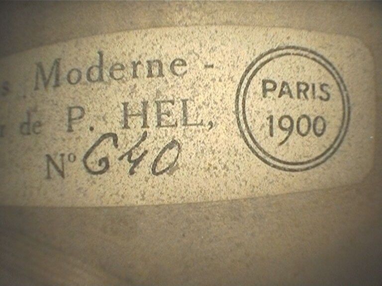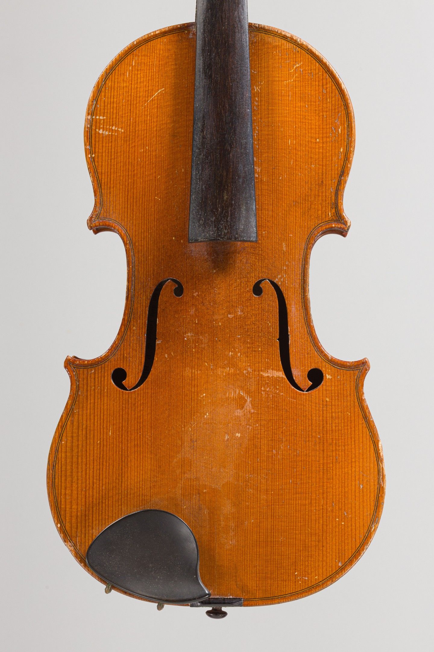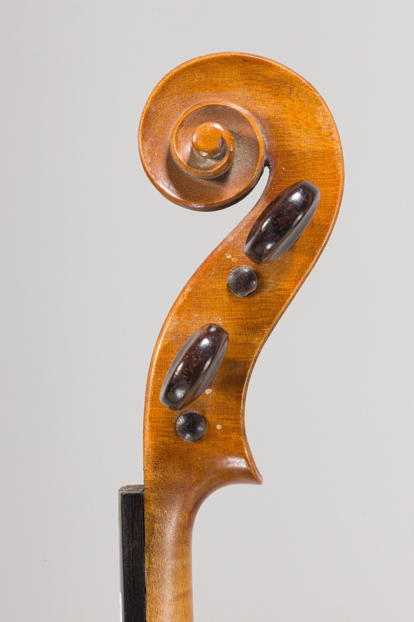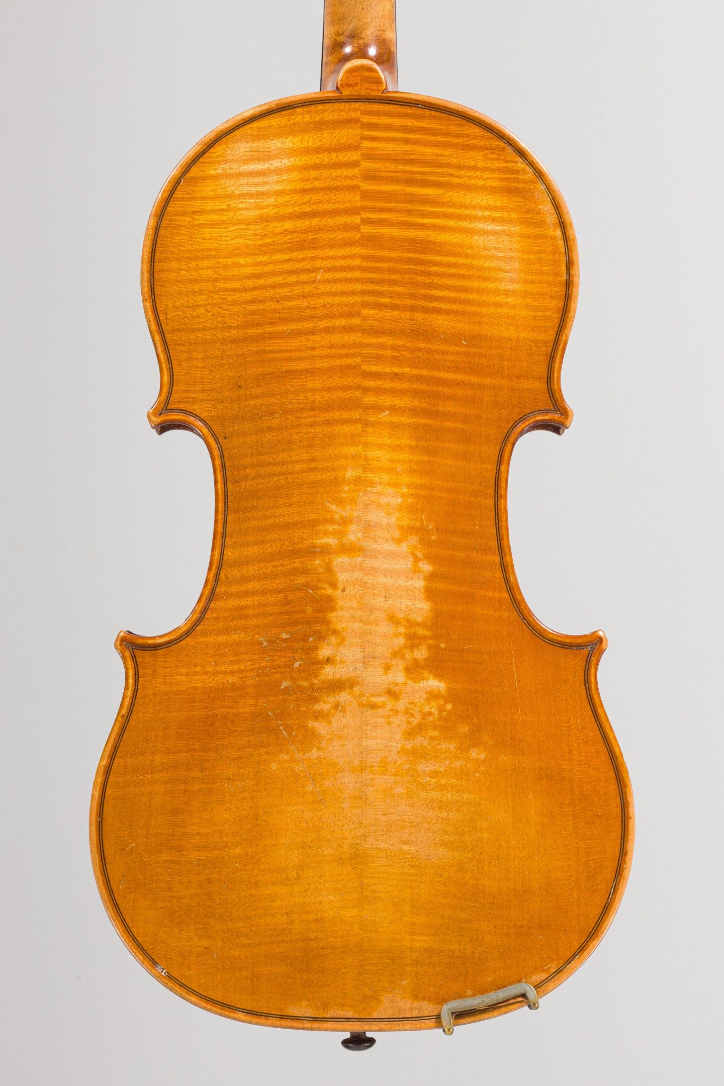 Violon de Léon MOUGENOT, fait à Mirecourt, vers 1925, et vendu par Pierre Hel en 1926 ; portant étiquette Stradivarius moderne fait dans l'atelier de P. Hel. Assez bon état. 358mm. [VREXP1]