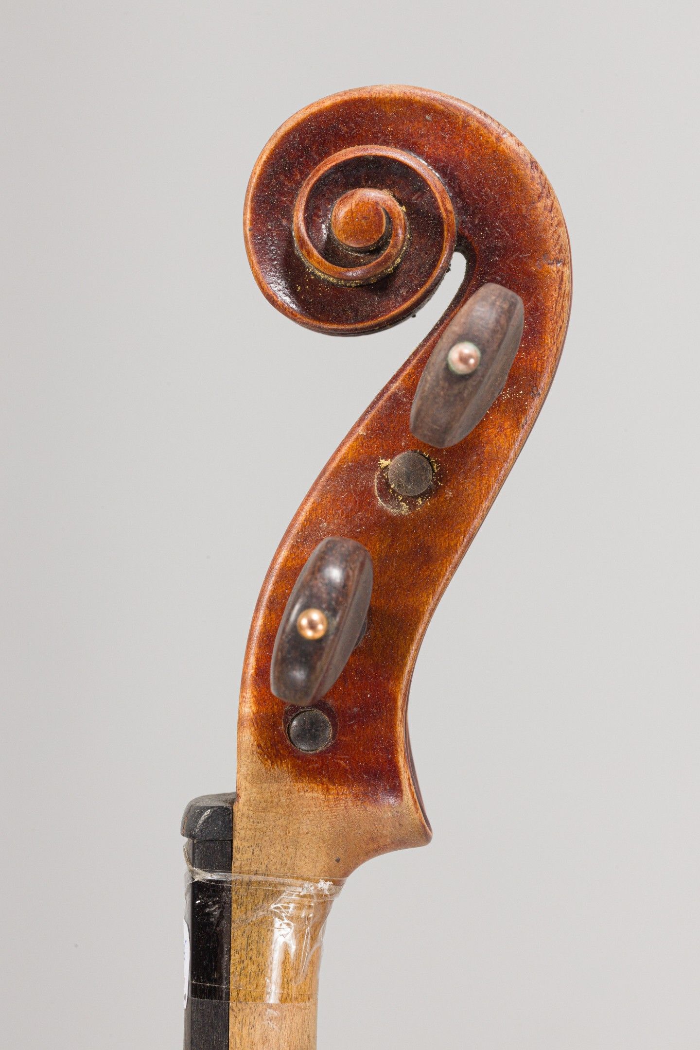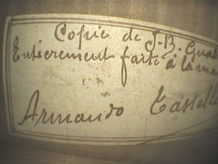 Intéressant violon probablement de Armand TASSEL, fait à Mirecourt en 1924 ; portant étiquette Armando Tasseli. Joint de fond et filet de fond partiellement décollés, éclisse arrière décollée, fausses cassures sur la table. 354mm [VREXP3]
