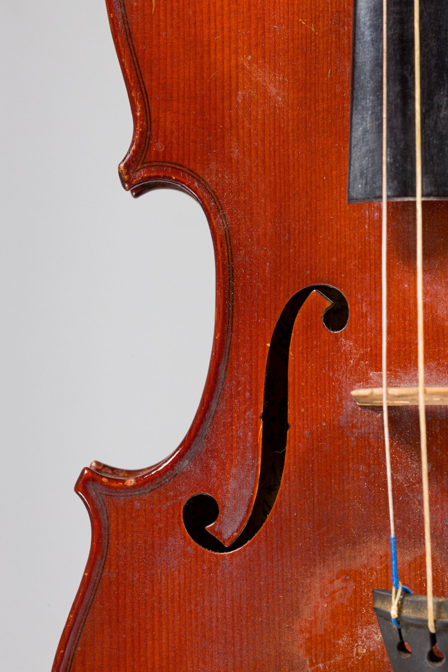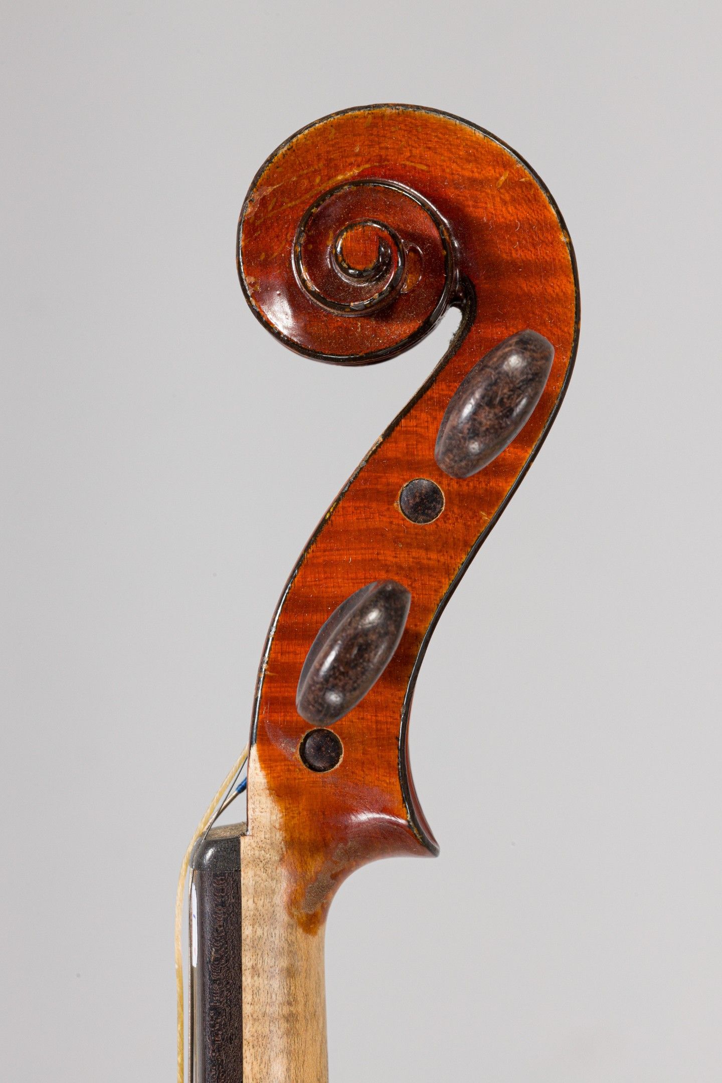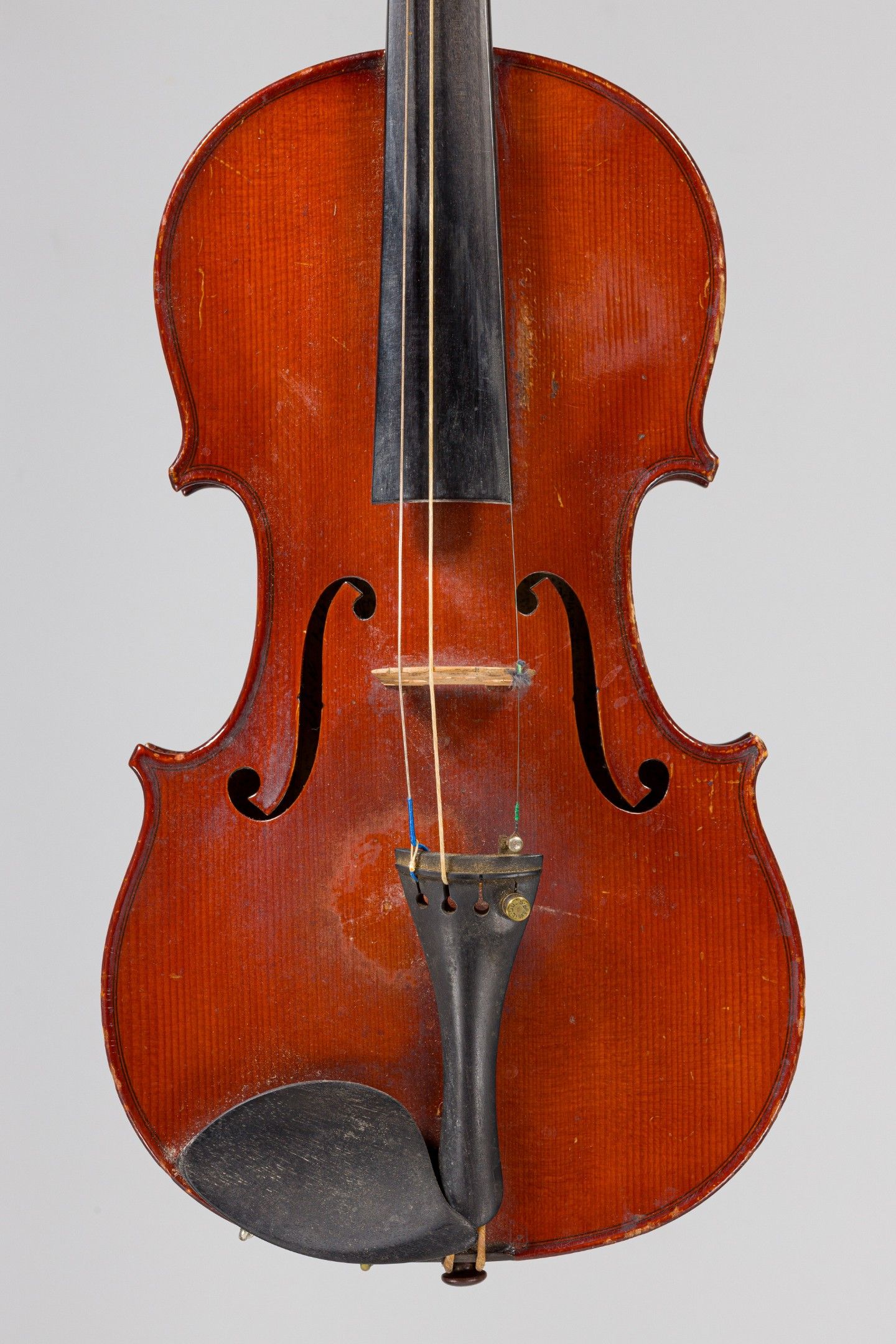 Violon de Charles BAILLY, fait à Mirecourt en 1927, numéroté 1341 ; portant étiquette Charles Bailly Maître luthier année 1927 N°1341 et marque au fer sur l'éclisse arrière. Assez bon état. 360mm. [VREXP1]