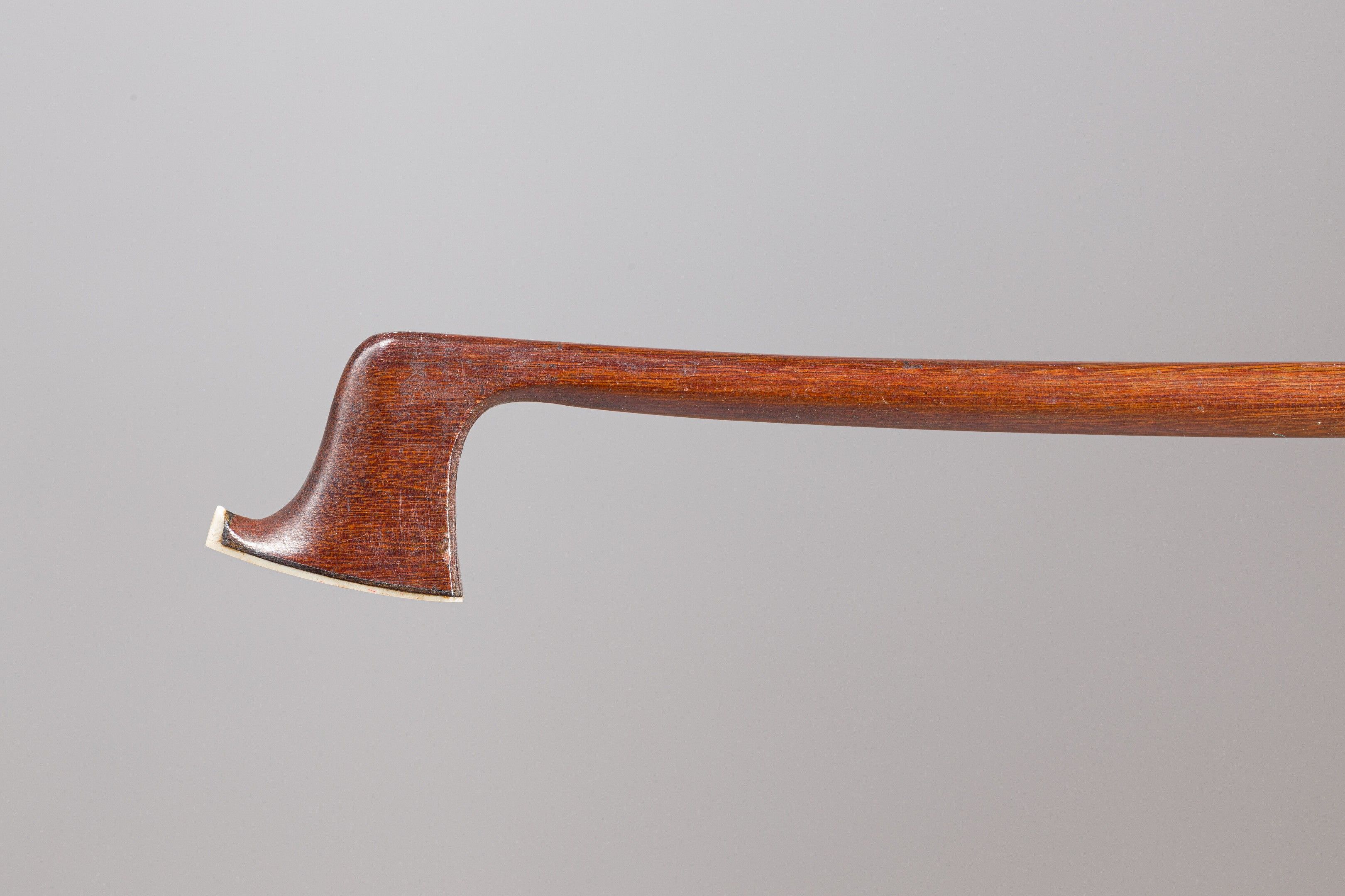 Archet d'alto de Charles-Louis BAZIN , fait vers 1940, signé "Louis Bazin", hausse et bouton de même époque, montés maillechort. 59g7. Fente, fentes bouton, éclats mortaise arrière. En bon état. (DZXC-BOP-1329)