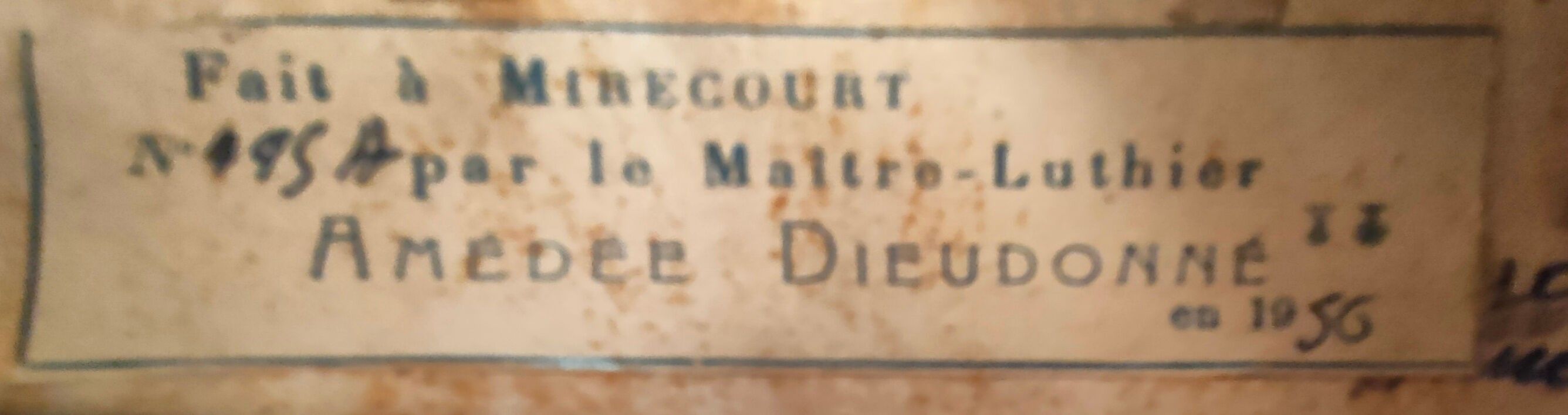 Violon d'Amédée DIEUDONNÉ, fait à Mirecourt en 1956, numérot…