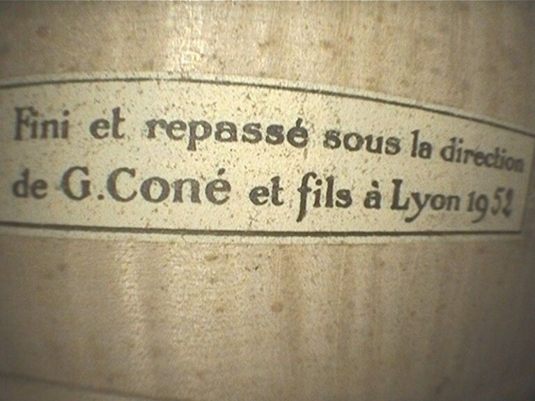 Violon Français, fait à Mirecourt, début XXème, dans le style de Marius Didier, fini et vendu par Georges Coné en 1952 ; portant étiquette fini et repassé dans l'Atelier de Goerges Coné. Assez bon état. 355mm [VREXP3]