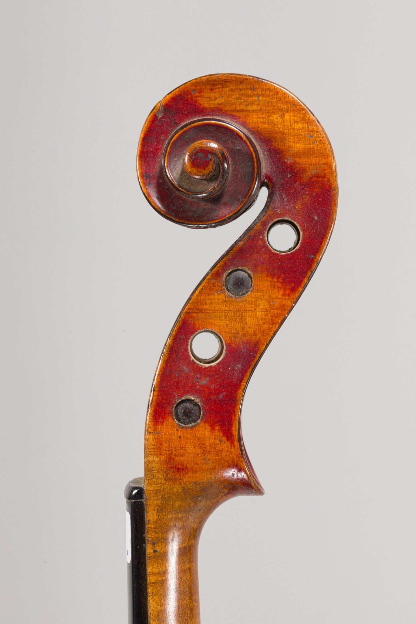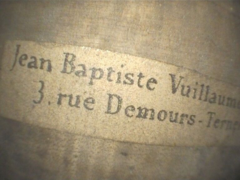 Violon de Jean Baptiste GARABOEUF dit Lacombe, fait à Mirecourt en 1850 ; portant étiquette apocryphe Vuillaume et signature de Garaboeuf sur le fond, et plusieurs signatures de restaurations sur le fond. Différentes cassures restaurées sur la table. 362mm [VREXP1]