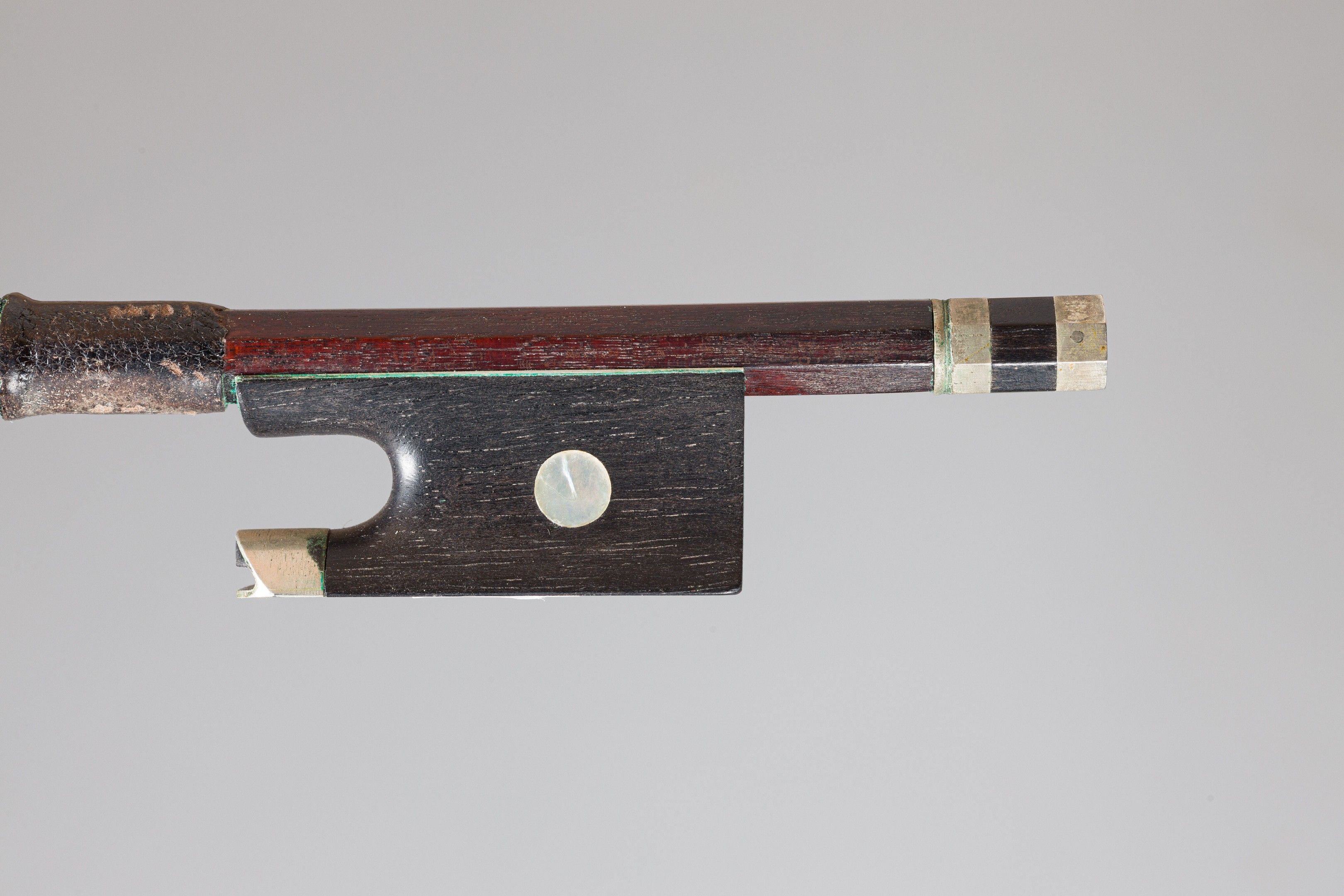 Archet de violon de Marie Louis PIERNOT, fait vers 1925, monté maillechort. 56g8, sans mèche. Coups baguette, fentes hausse et bouton. Bon état. (EAXV-BKU-5430)