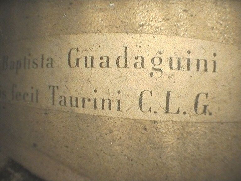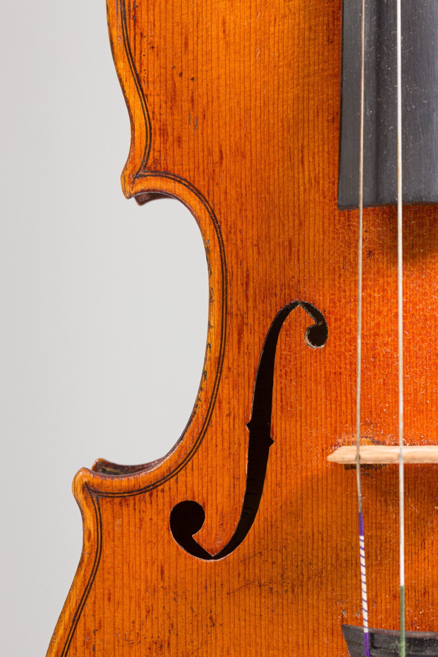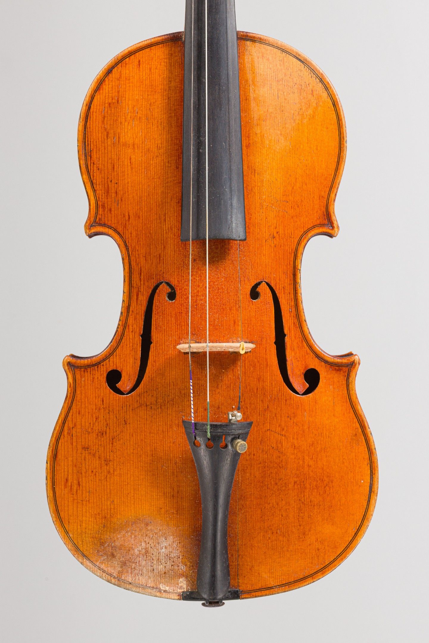 Violon de Nicolas CAUSSIN, fait à Neufchâteau vers 1870-1880 ; portant étiquette apocryphe Guadagnini. Deux cassures sur la table dont une cassure d'âme. 357mm [VREXP1]