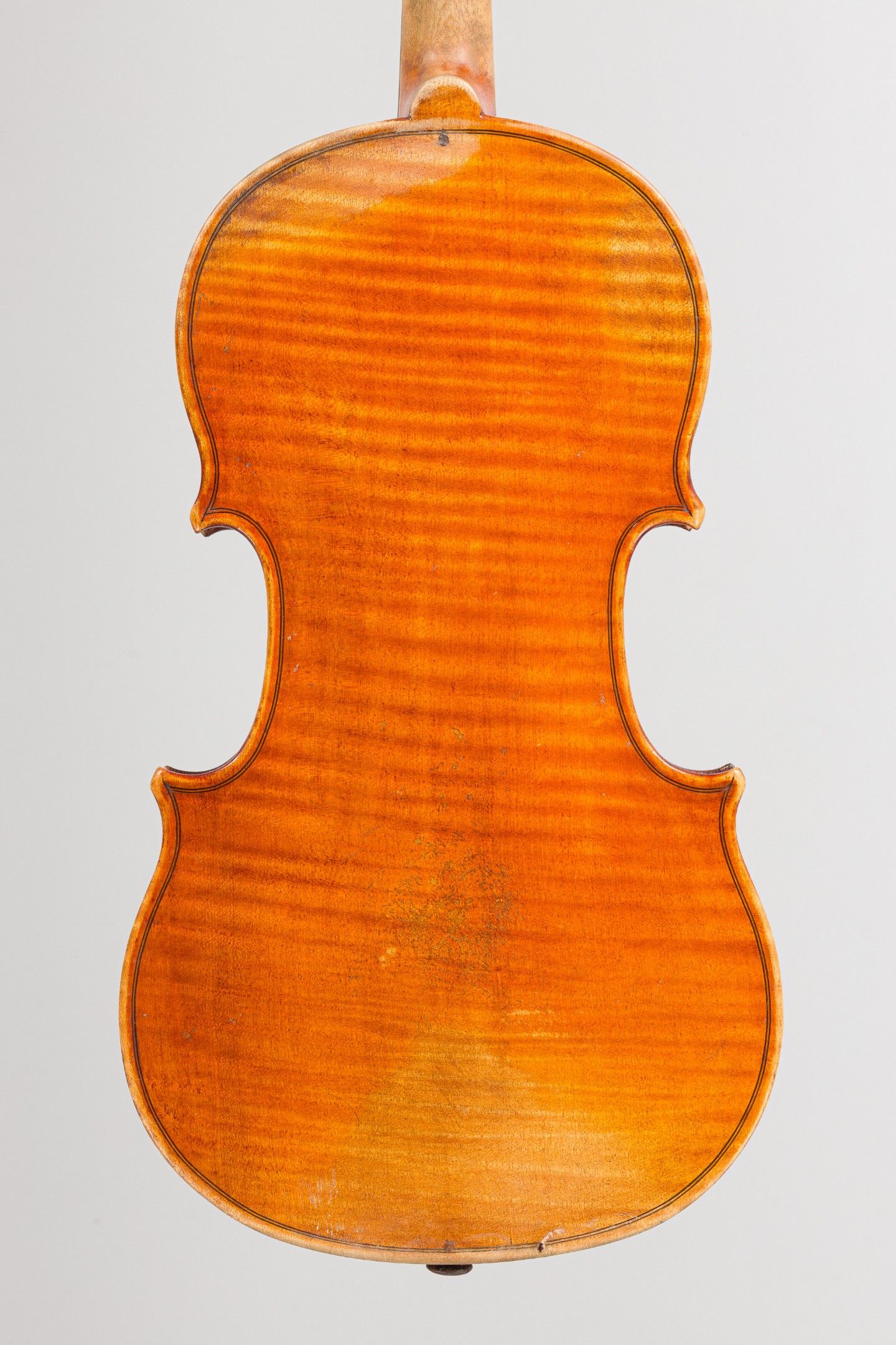 Violin by Nicolas CAUSSIN, made in Neufchâteau around 1870-1880 ; bearing a facsimile Guadagnini label. Two cracks on the table, including a soundpost crack. 357mm [VREXP1]
