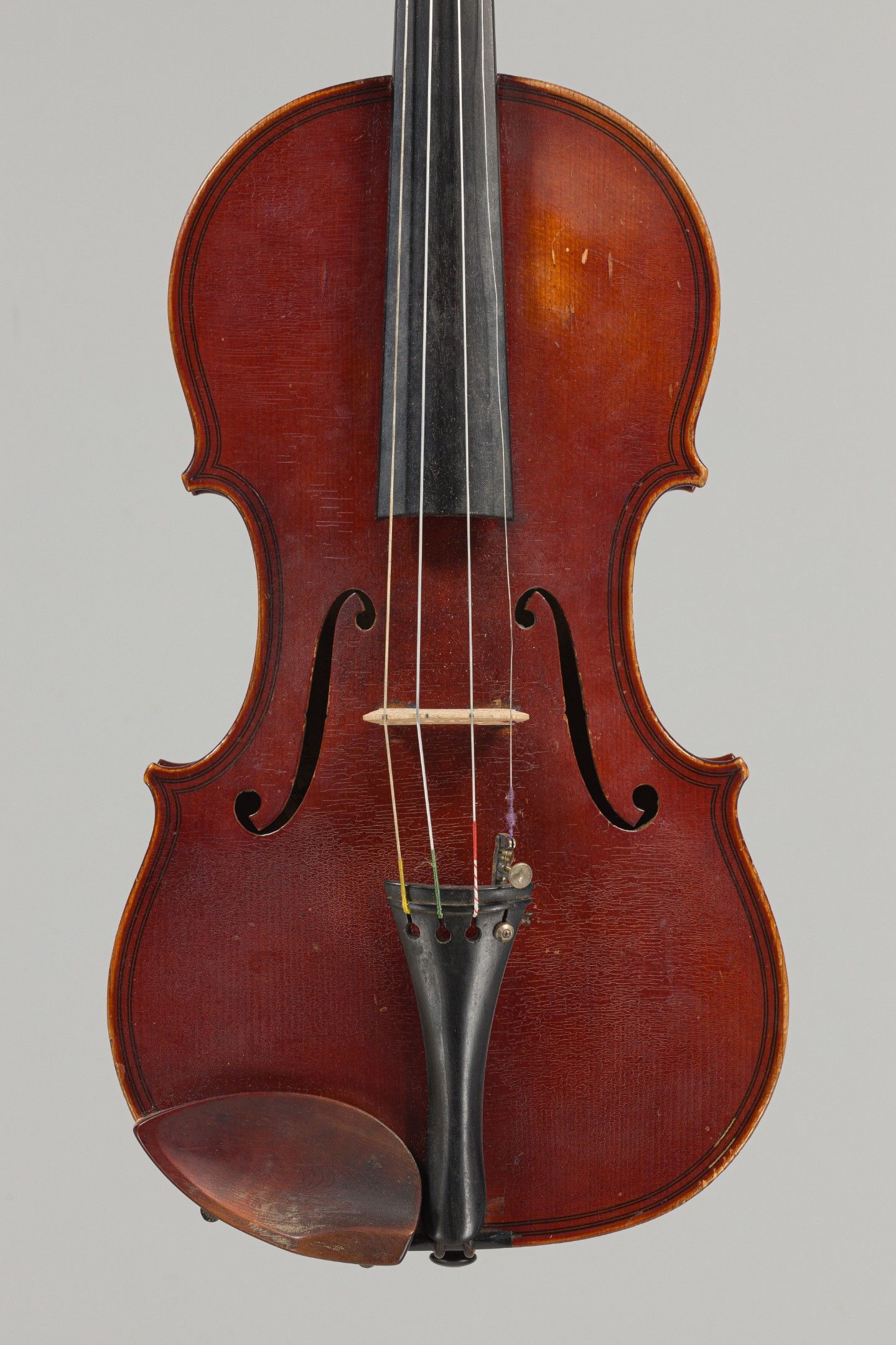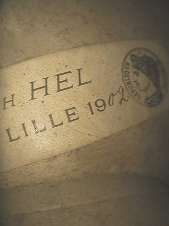 Violin by Joseph HEL made in Lille in 1902, numbered 643, Maggini model ; bearing label of Joseph Hel luthier in Lille 1902 and signature made by J. Hel in 1902 No. 643 on the table and on the back. Fair condition. 362mm. This instrument is more than 100 years old. [VREXP1]
