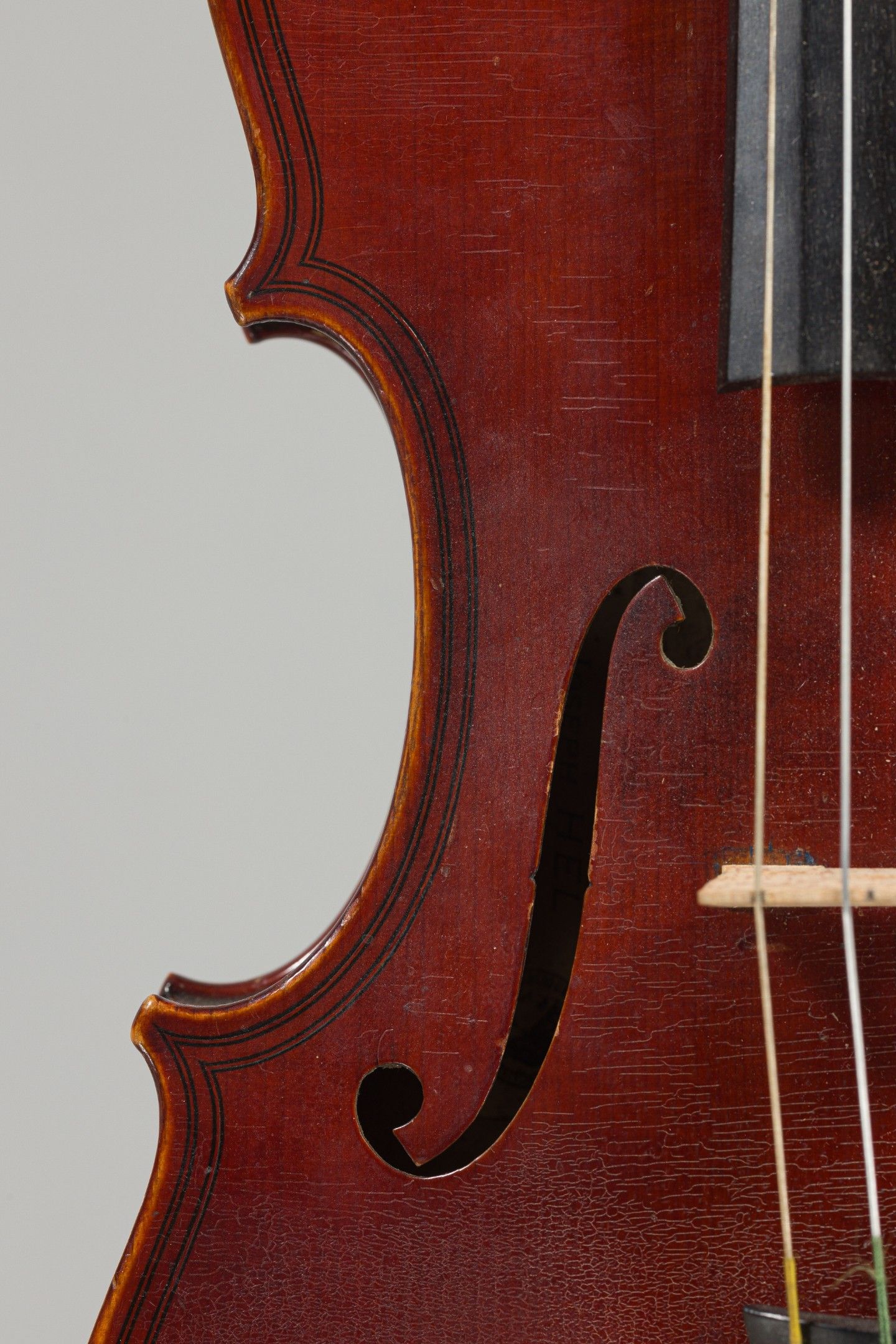 Violon de Joseph HEL fait à Lille en 1902 numéroté 643, en modèle Maggini ; portant étiquette de Joseph Hel luthier à Lille 1902 et signature fait par J. Hel en 1902 N°643 sur la table et sur le fond. Assez bon état. 362mm. This instrument is more than 100 years old. [VREXP1]