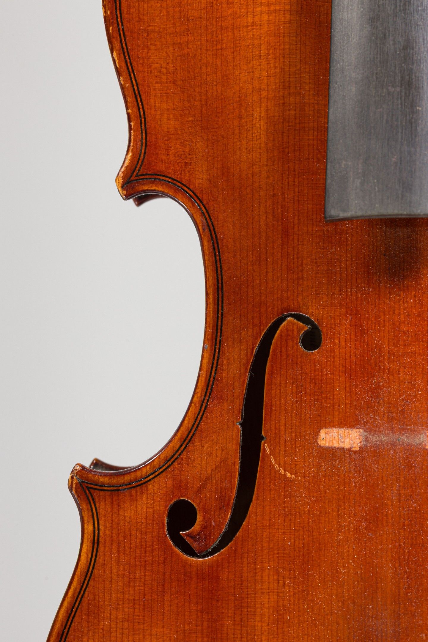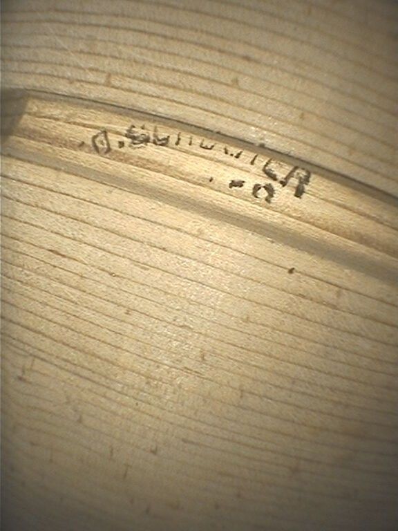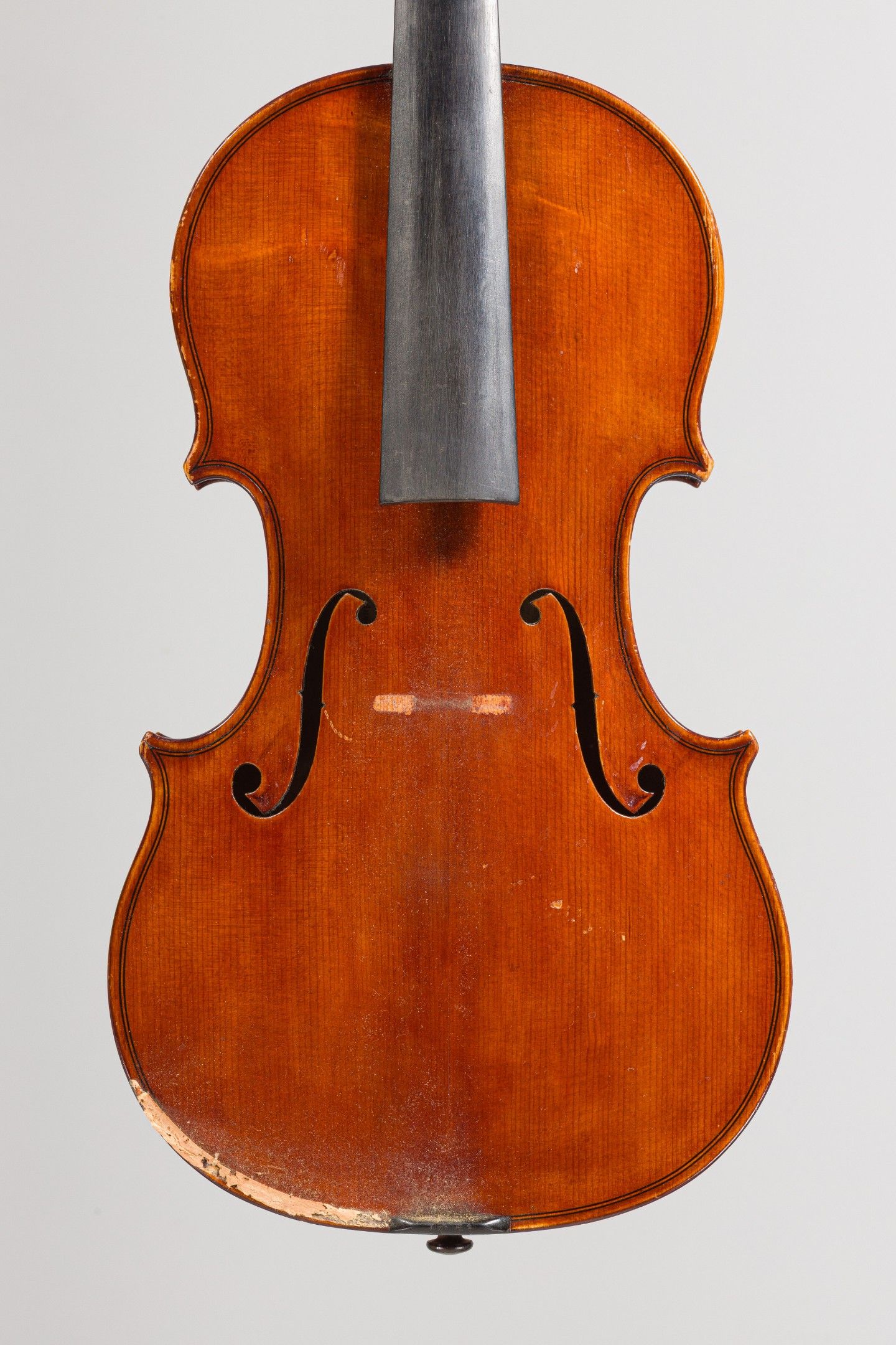 Violon de Édouard SCHUSTER, fait à Bruxelles en 1939, numéroté 128 ; portant étiquette et marque au fer de Schuster. Assez bon état. 355mm [VREXP1]