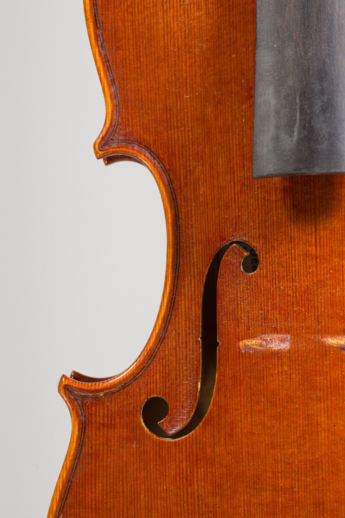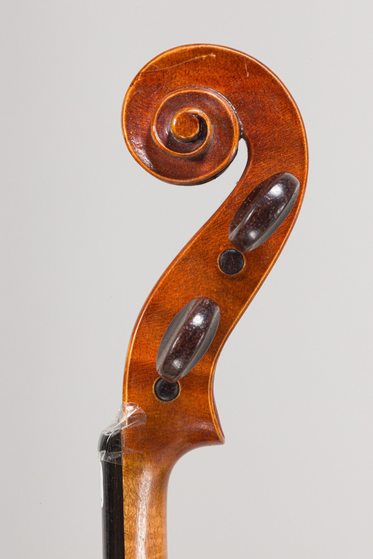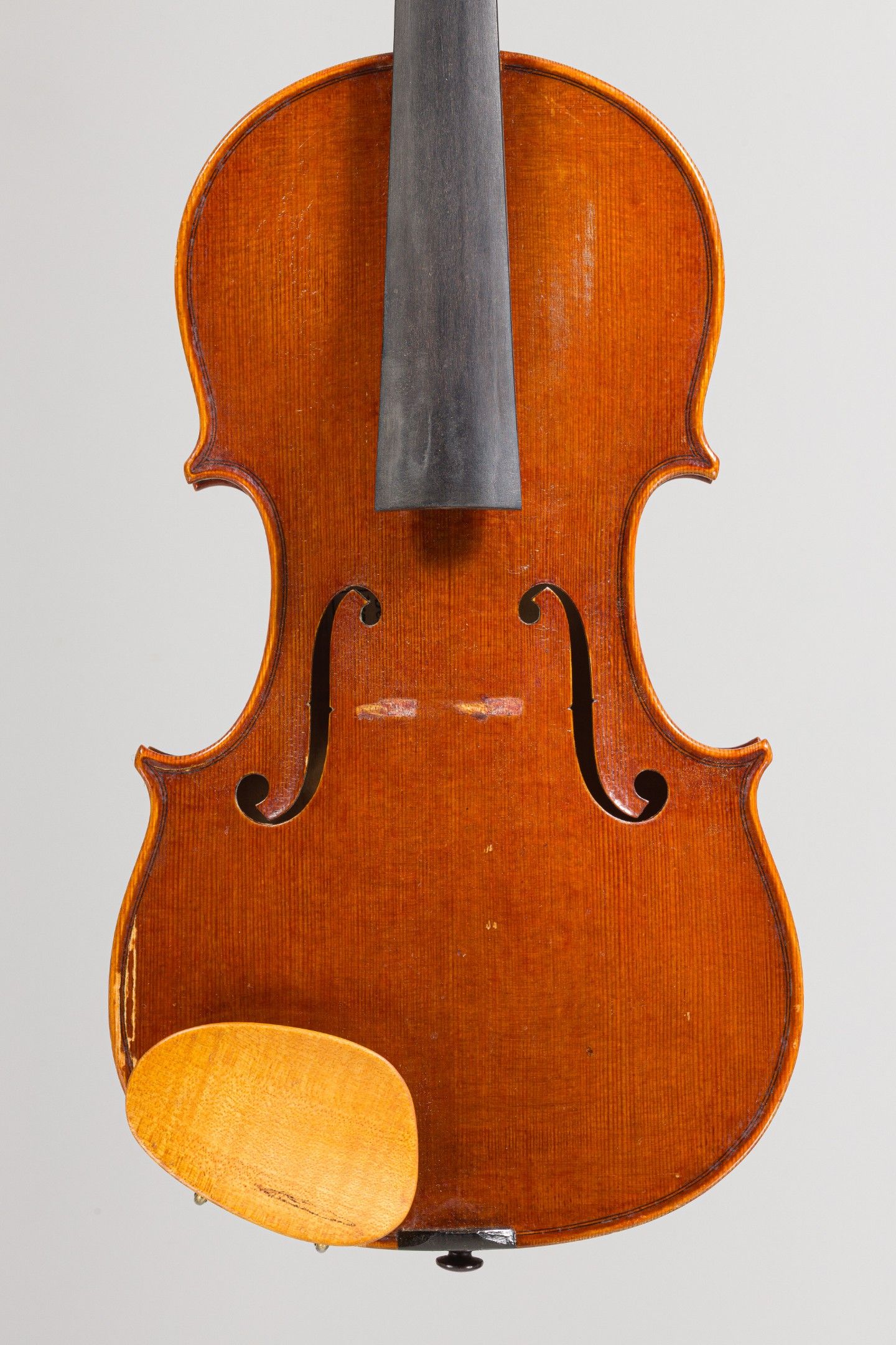 Violon de Jean PETITCOLAS fait à Paris 1967 ; portant étiquette Jean Petitcolas 1967. Vernis craquelé sur la table. 355mm [VREXP1]