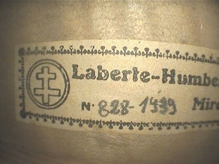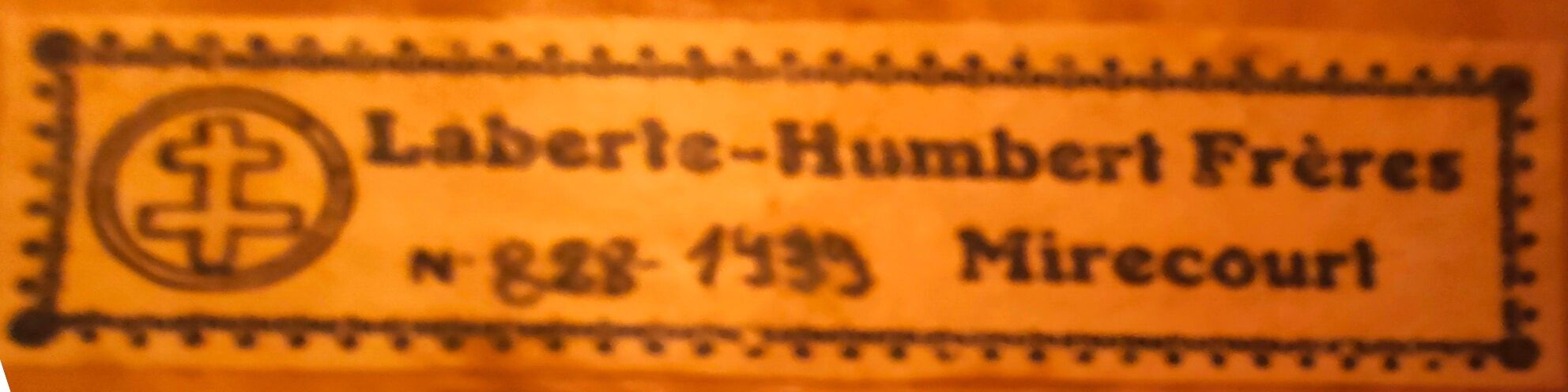 Violon de la maison LABERTE, fait à Mirecourt en 1939, numéroté 828 ; en modèle « Laberte-Humbert Frères » dont il porte l'étiquette. Petite restauration à la tête. 359mm. [VRVI2512_107-VREXP2]