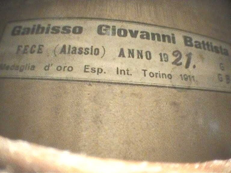 Violin by Giovanni Battista GAIBISSO, made in Alassio in 1921 ; bearing a label by Gaibisso Giovanni Battista. Condition: some repairs on the top, including a soundpost crack. 358 mm. [VREXP1]