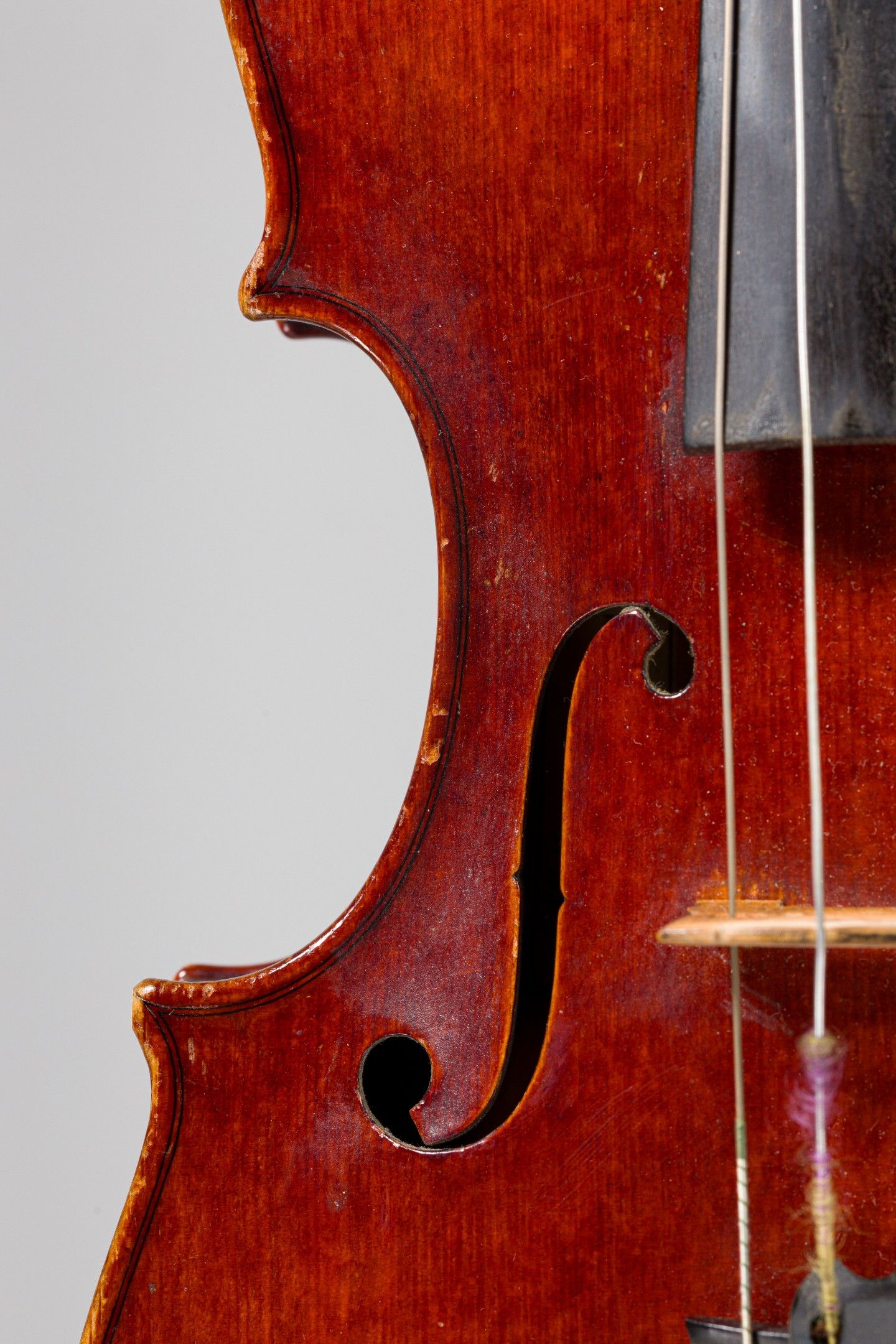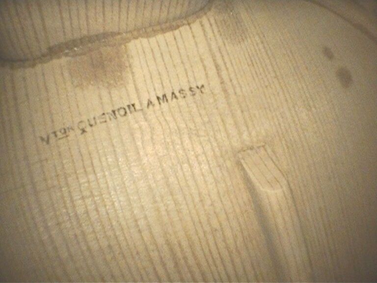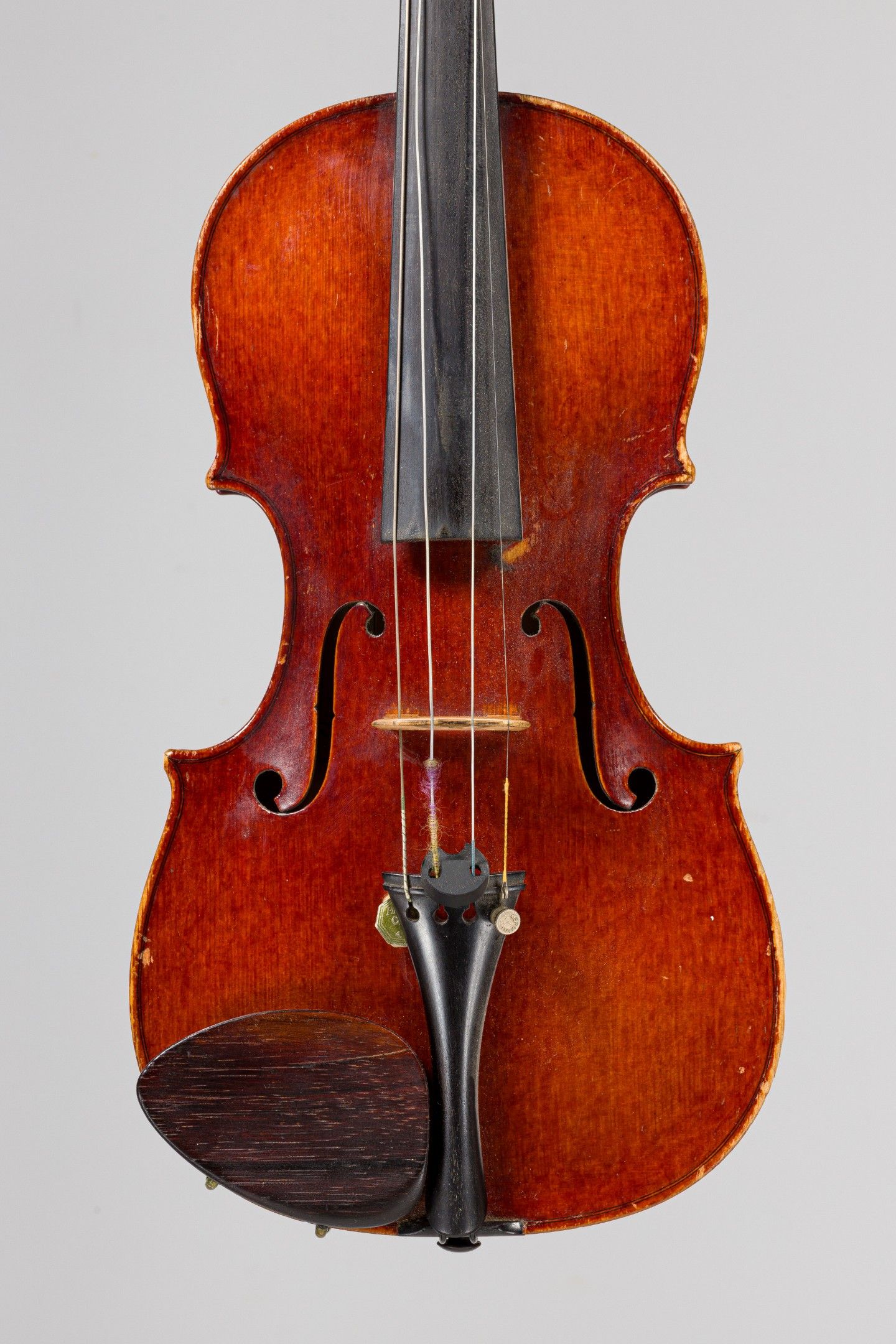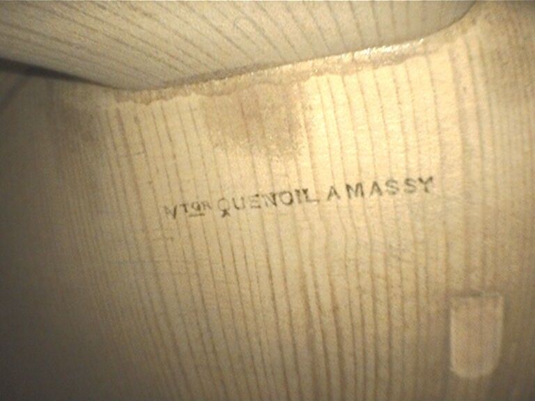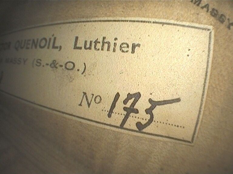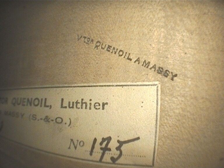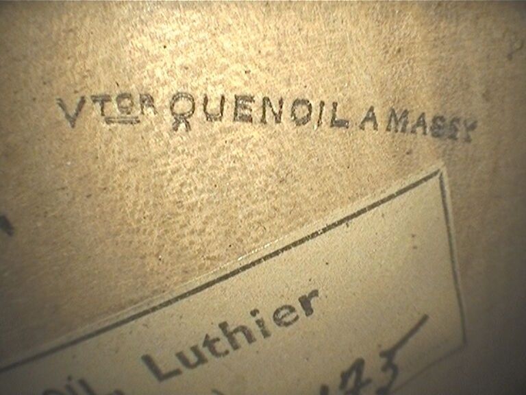Violon de Victor QUENOIL, fait à Massy en 1948, numéroté 175 ; portant étiquette de Victor Quenoil luthier à Massy, année 1948 N°175 et marque fer sur la table et sur le fond de Quenoil. Assez bon état. 354mm. [VREXP1]