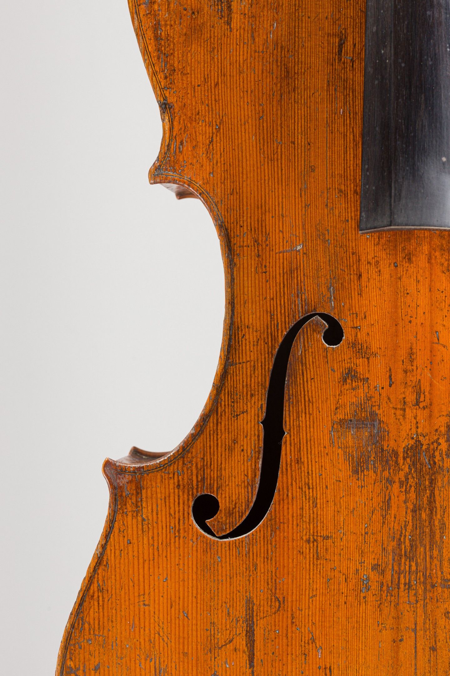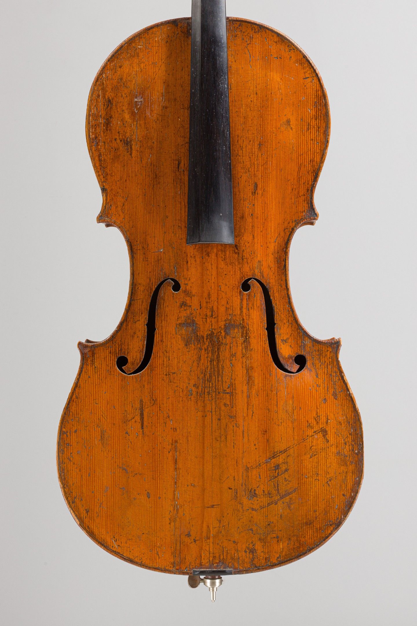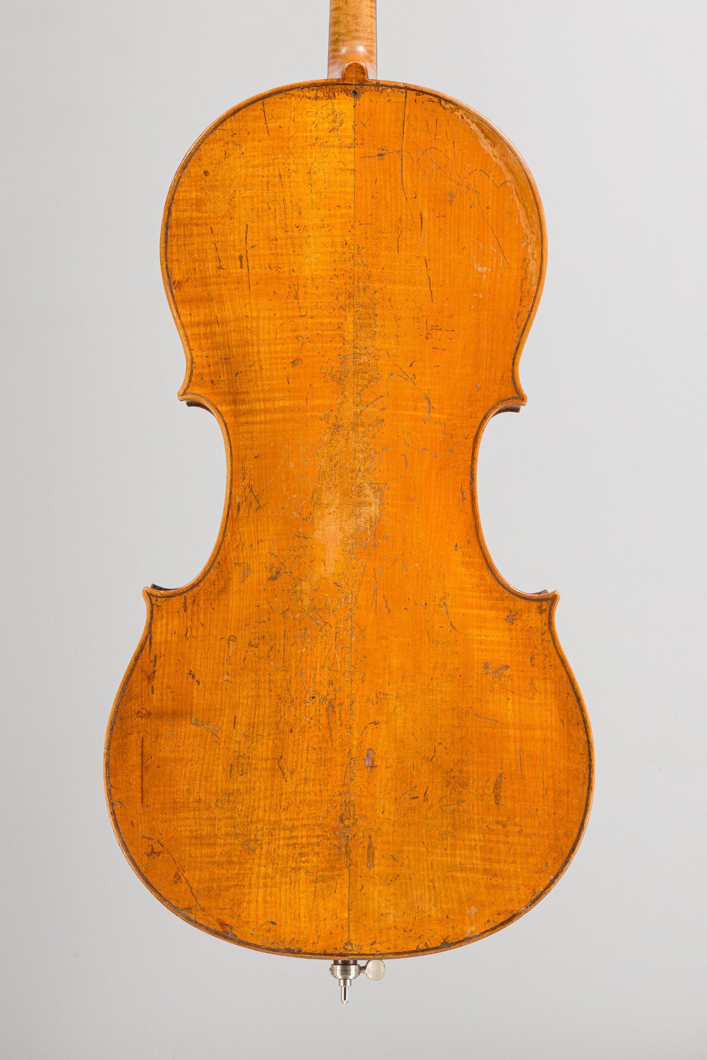 Intéressant violoncelle de Claude PREVOST, fait à Paris en 1763 ; portant étiquette P.C. Prevost. Différentes restaurations. 733mm. [VREXP1]