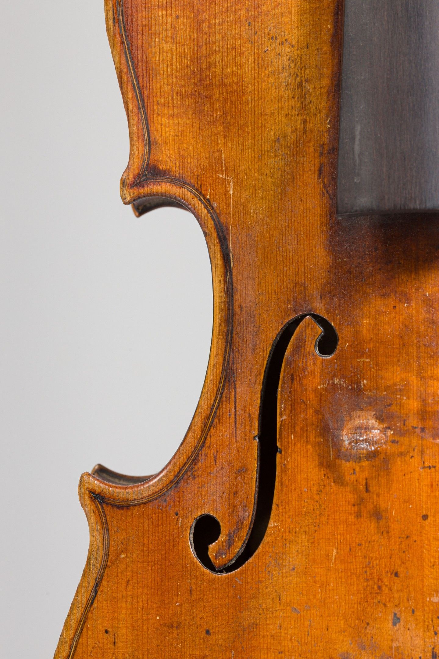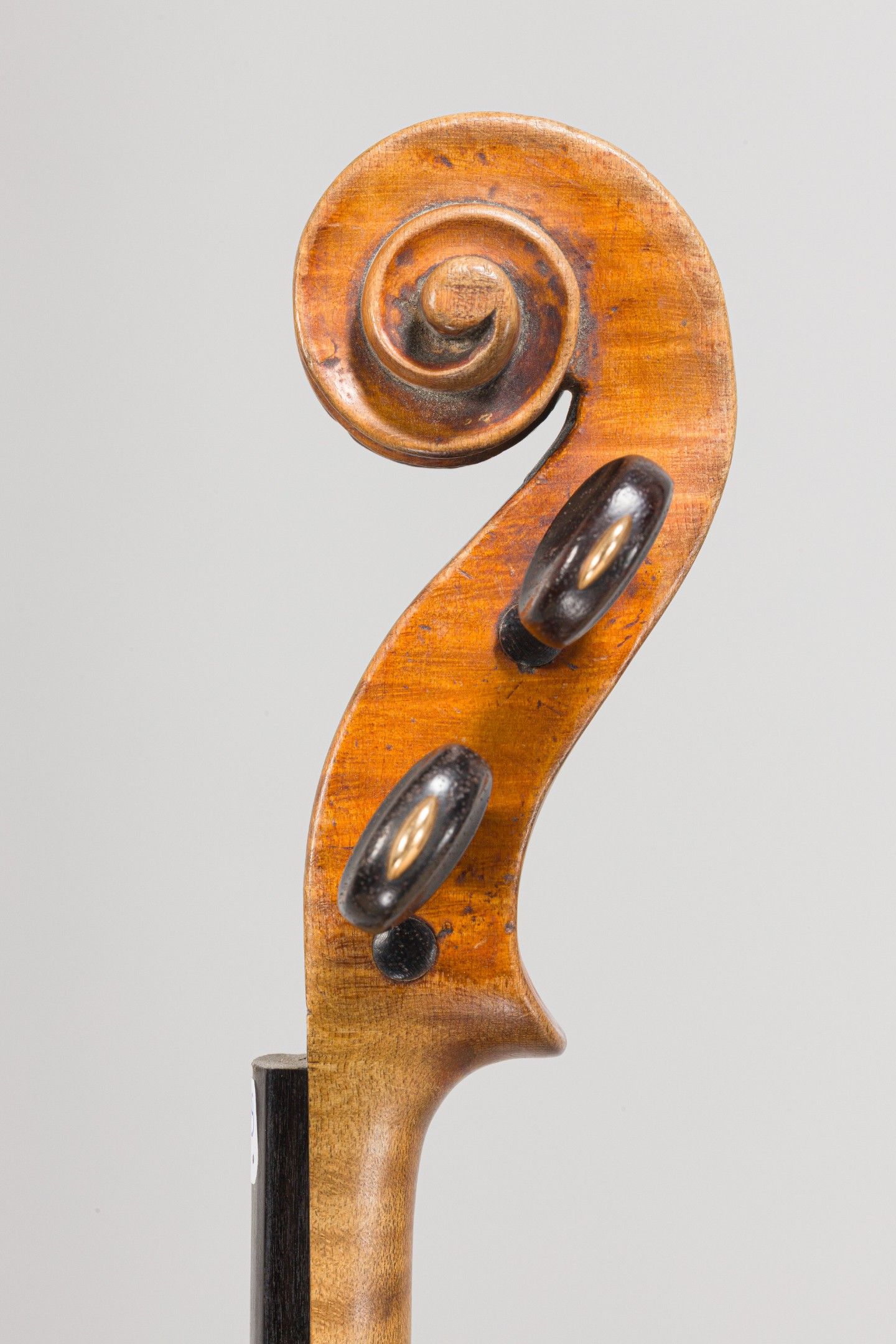Interesting violin probably by Stefano SCARAMPELLA, made in Brescia around 1890; bearing an illegible label. Condition: neck unglueed in parts, top rib unglueed. 365 mm. [VRVI2512_077-VREXP3]