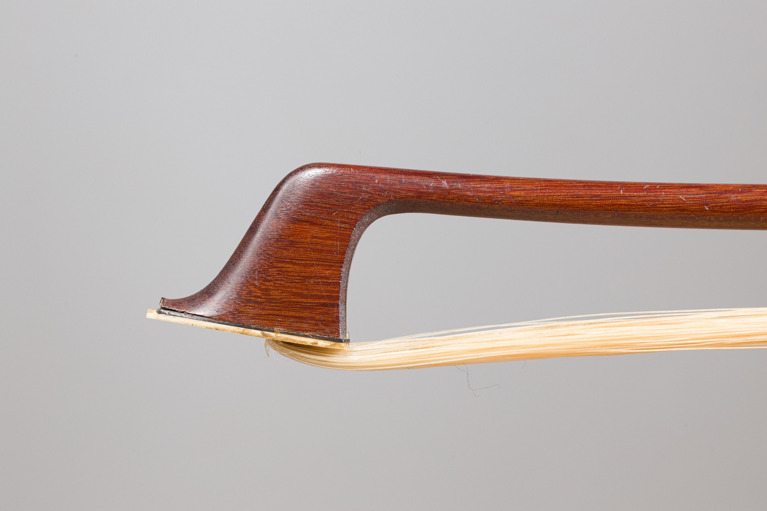 Baguette d'archet de violoncelle de Henri Louis GILET, faite vers 1940, hausse postérieure. 72g7, mèche fine, sans garniture ni bouton. Coups dessus tête et baguette. Bon état. (EBEW-BRX-2381) (3243/180)