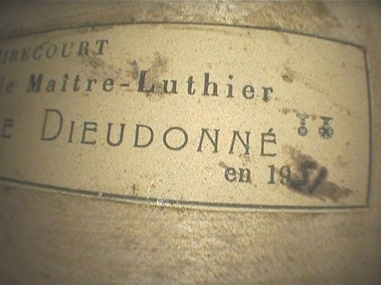 Violon d'Amédé DIEUDONNE, fait à Mirecourt en 1951, numéroté 986 ; portant étiquette de Amédée Dieudonné. Bon état. 359mm. Vendu avec son certificat d'origine. [VREXP1]