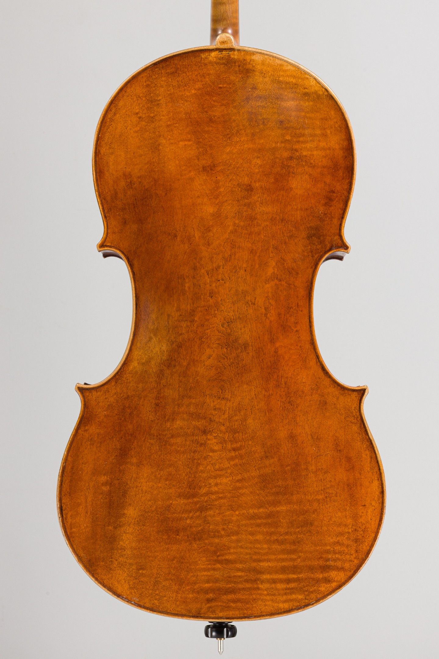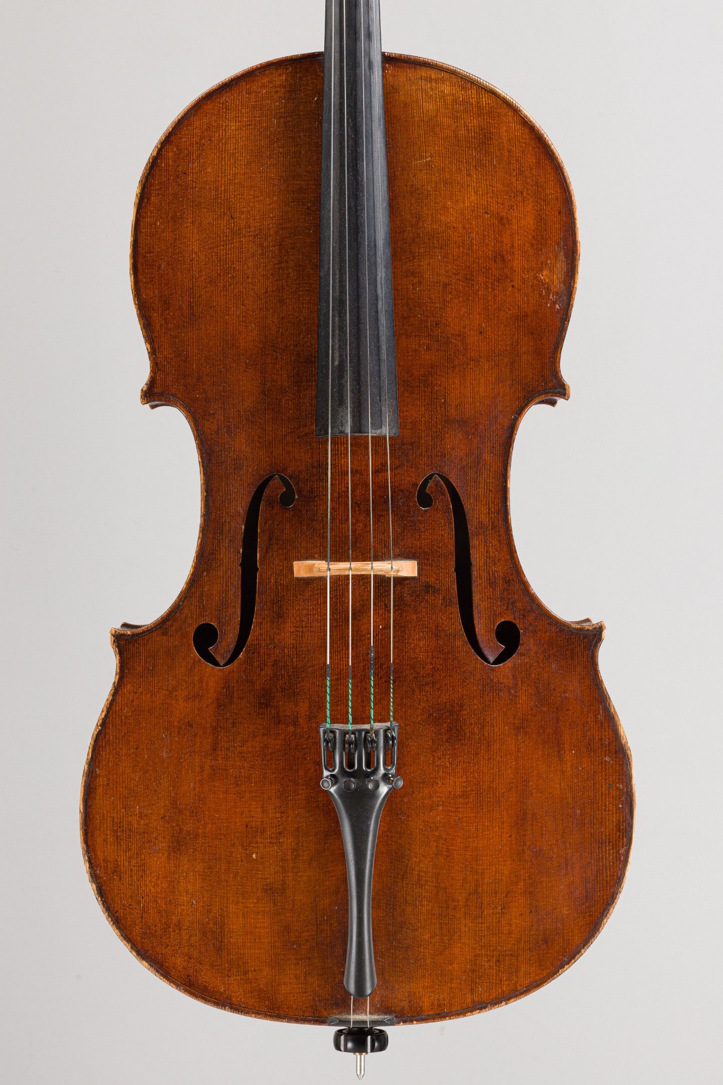 Violoncelle d'Amédée DIEUDONNE, fait à Mirecourt en 1943, spécialement pour Amati Mangenot à Bordeaux ; portant étiquette, marque au fer et signature d'Amati Mangenot. Cassures restaurées sur les éclisses. 758mm [VREXP1] (250311)