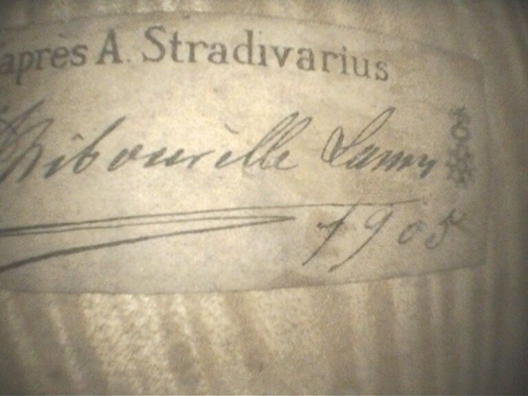 Beau violoncelle de la maison JÉRÔME THIBOUVILLE-LAMY fait à Mirecourt, en 1905 ; portant étiquette Jérôme Thibouville Lamy. Assez bon état. 762mm. [VREXP1]