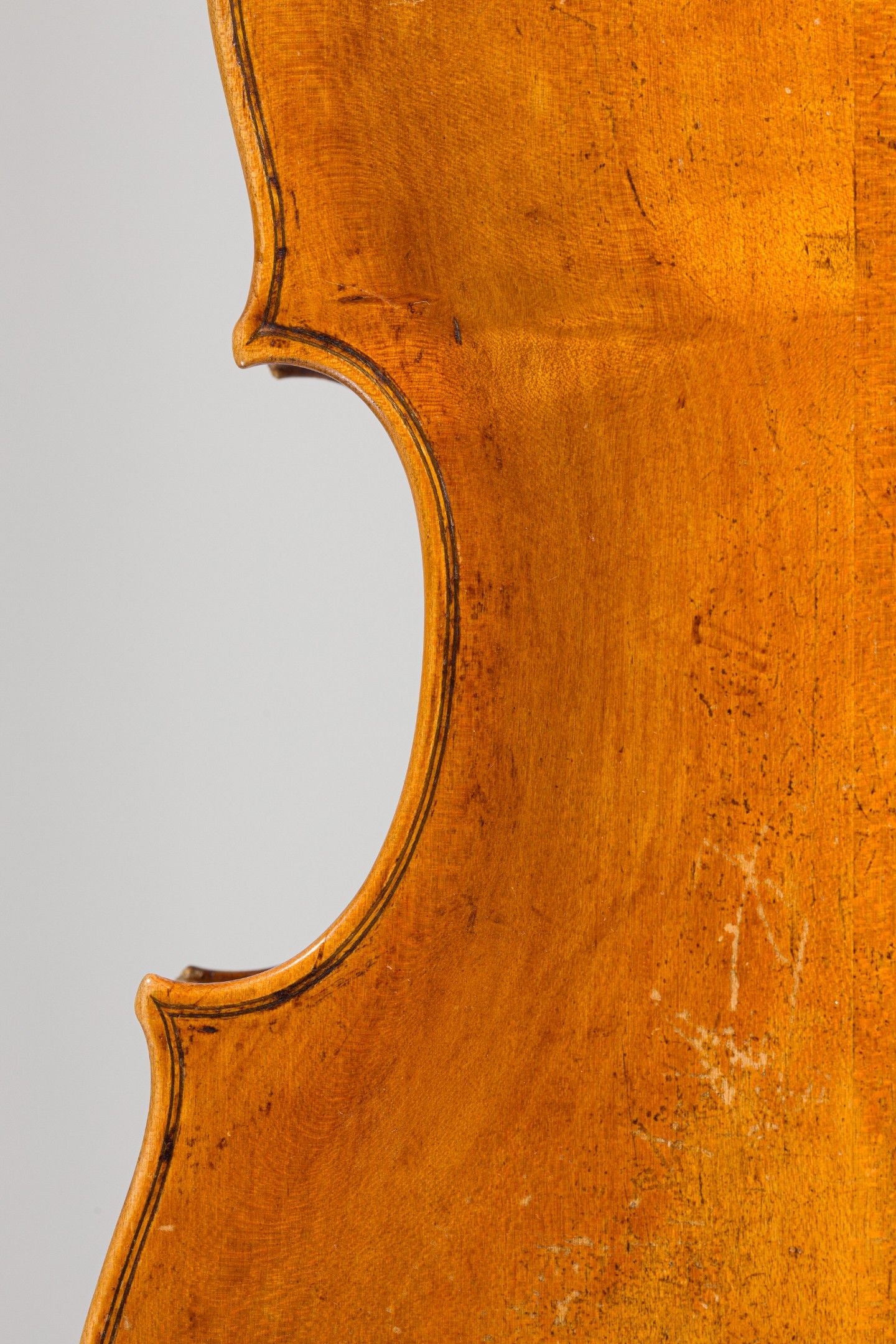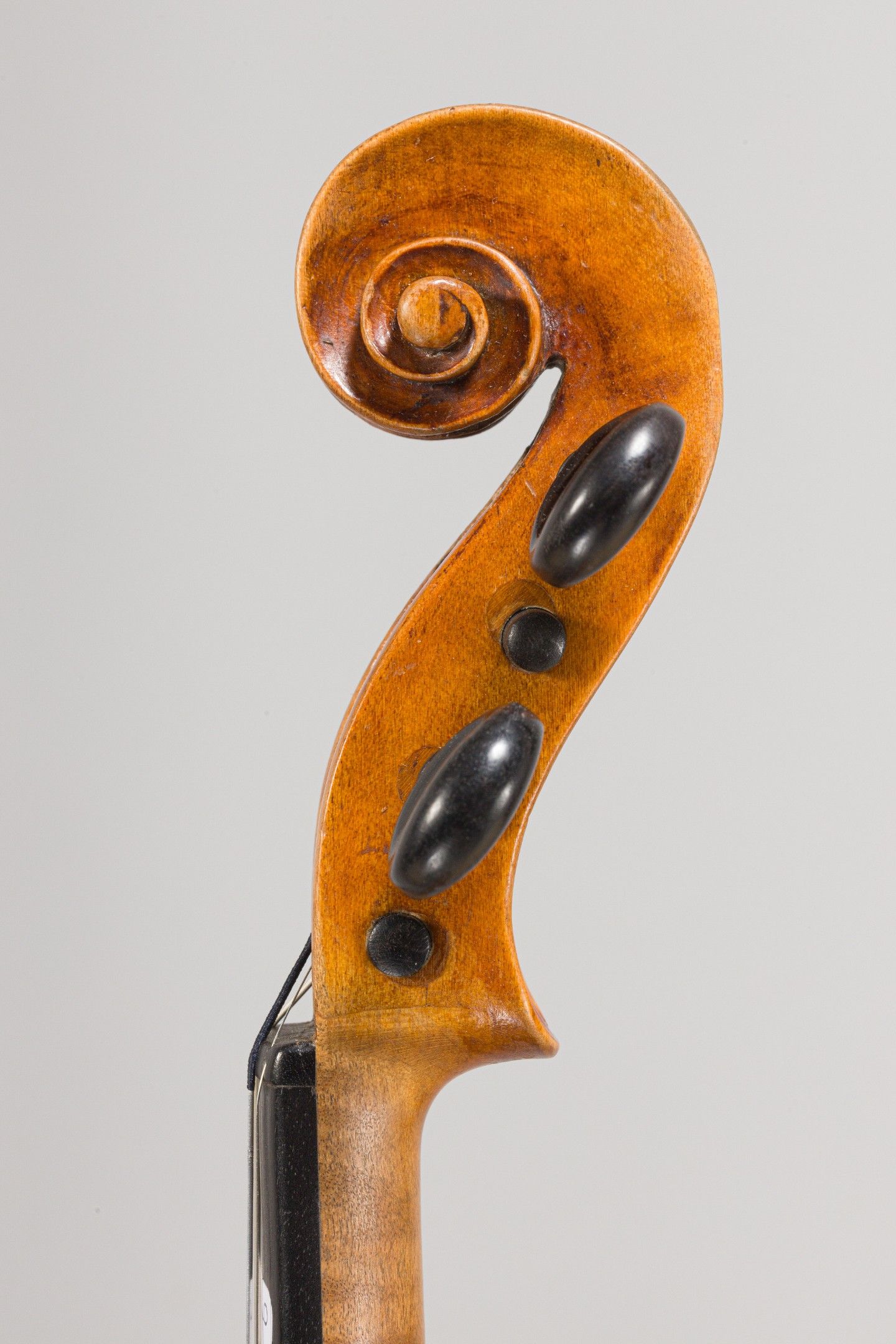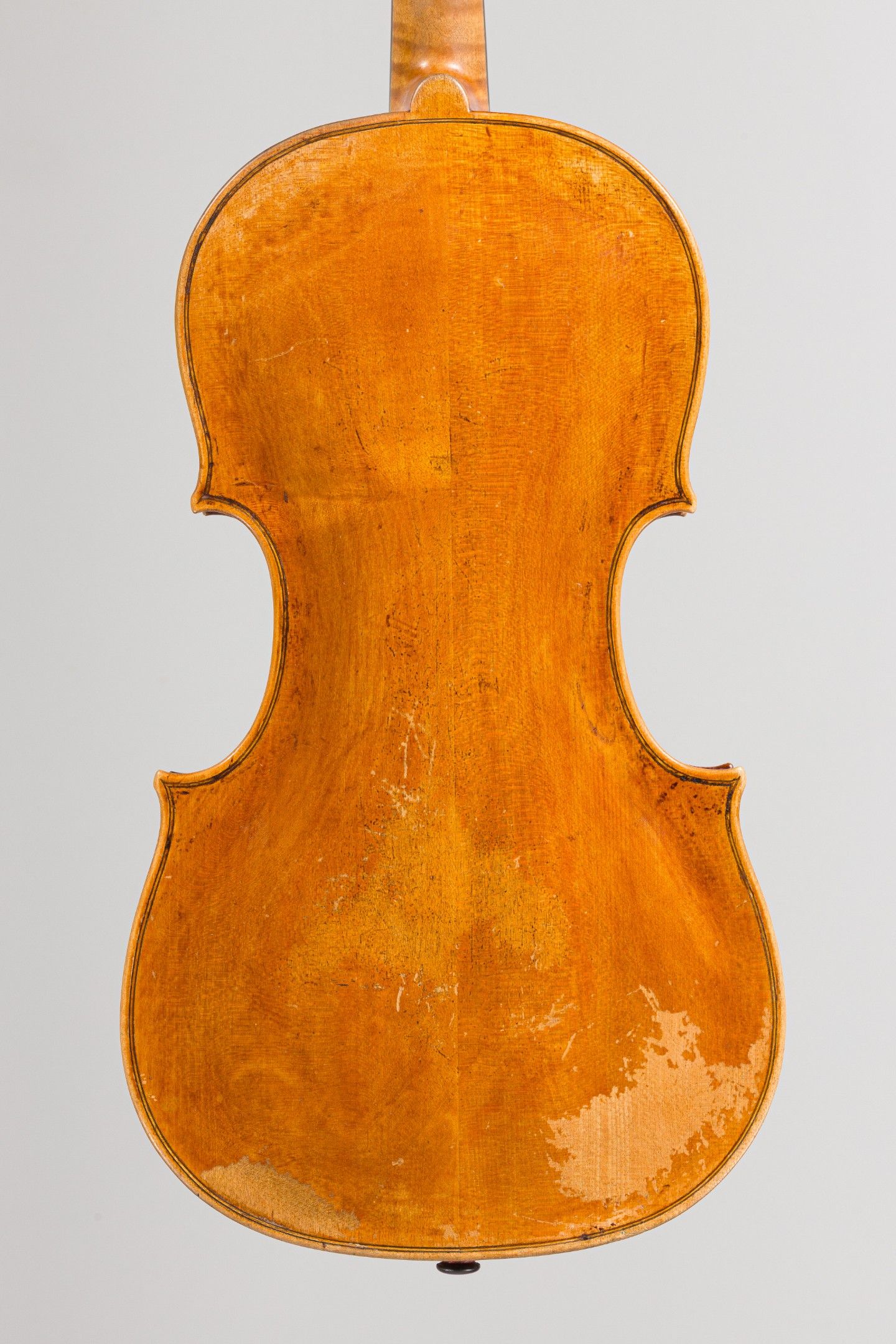 Violon Allemand, seconde partie du XVIIIème ; portant étiquette apocryphe Rudger. Quelques restaurations sur la table et tête restaurée. 357mm. [VREXP3]