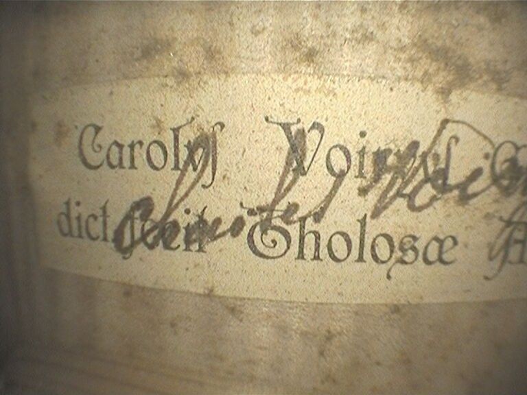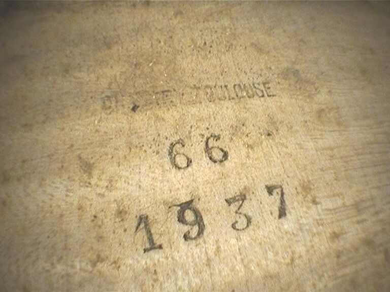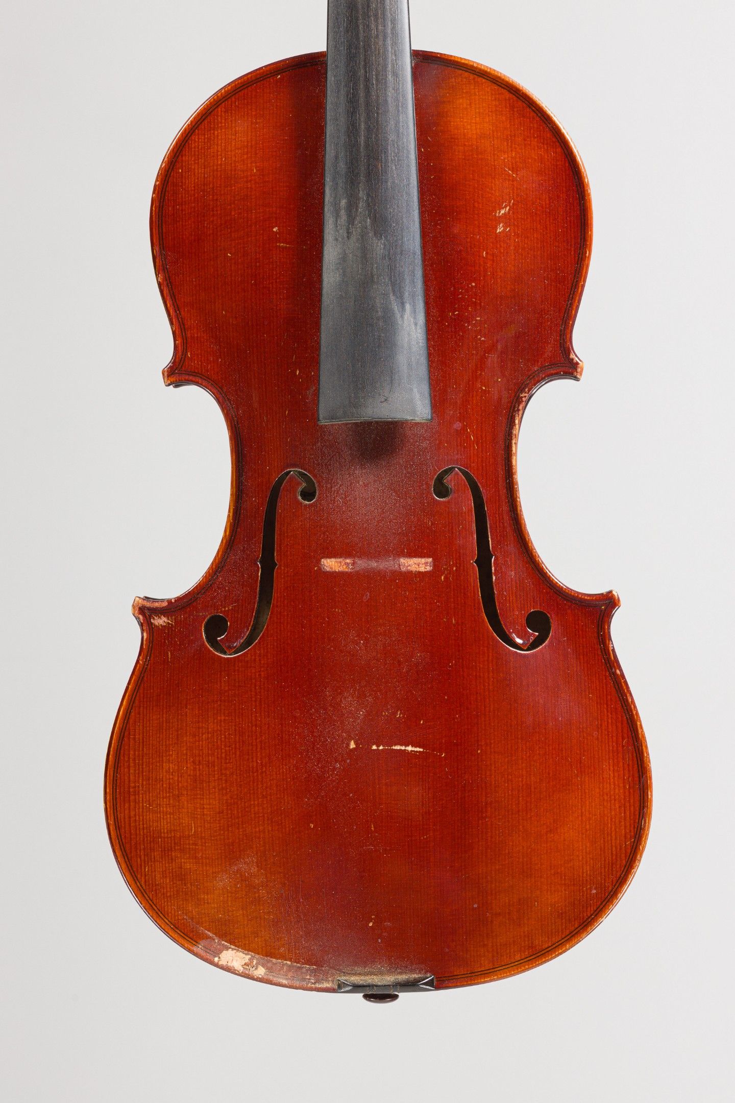 Violon de Charles VOIRY, fait à Toulouse, en 1937, numéroté 66 ; portant étiquette Carolus Voiry et marques au fer sur la table et sur le fond. Bon état. 357mm. [VREXP1]. (Réf. M7111-14)